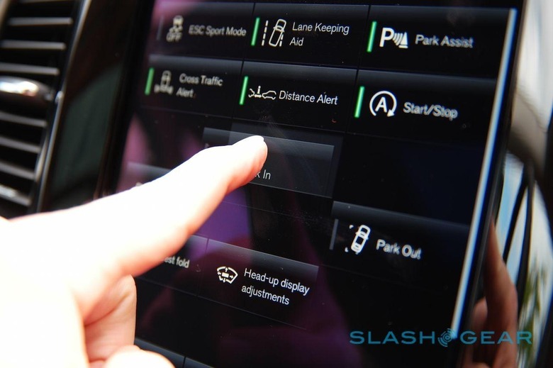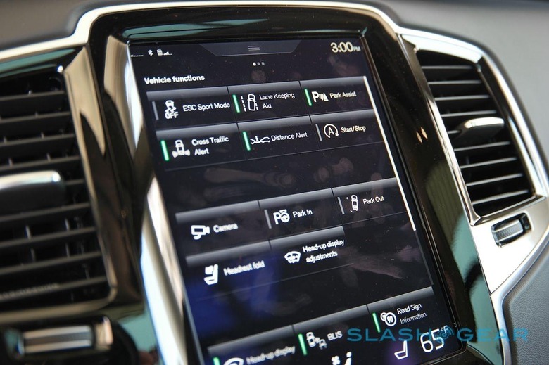 Everything else gets a virtual button: swipe from the left and you pull open a pane of toggles for things like lane departure and the HUD (which you can long-press and drag to reorganize). Swipe from the right, meanwhile, and you'll find apps, with things like Yelp, Spotify, TuneIn radio, and a browser that can tap into the XC90's baked-in wireless hotspot.