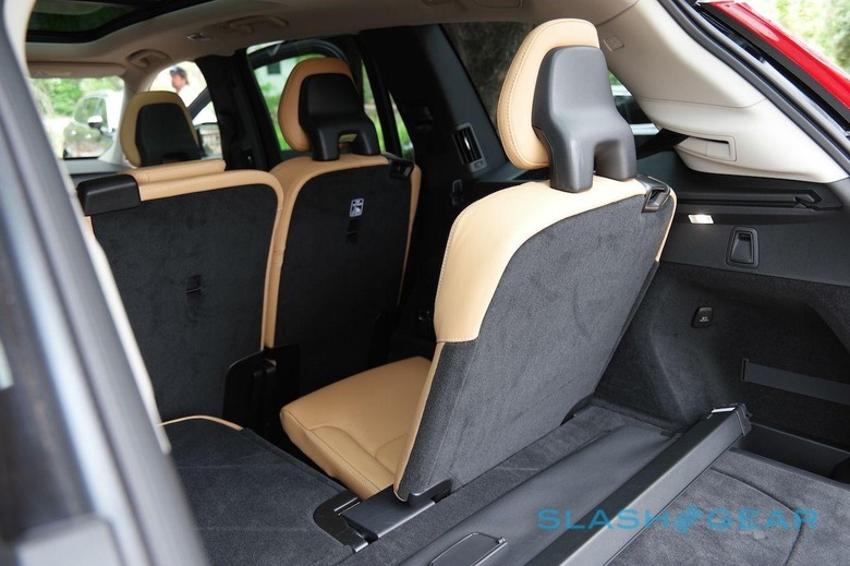 Volvo conservatively suggests the third-row was designed for people 5'6 or under, but even at 5'8 I my head wasn't touching the roof and my knees had a sliver of space behind the seats in front, even with the second-row pushed all the way back. Slide those seats forward, and even the six-footers I coaxed into the rear weren't entirely squashed.