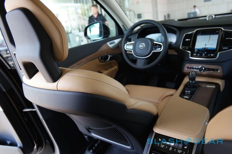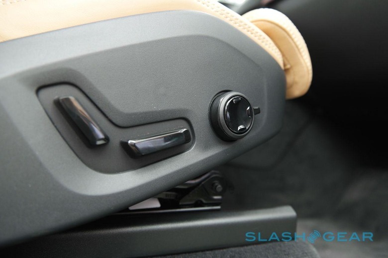 The driver and front passenger get not only power tilt/slide but adjustable lumbar, side, and extending thigh support. Like in the Cadillac ATS-V, the XC90 sensibly walks you through what you're adjusting with on-screen graphics in the center stack.
