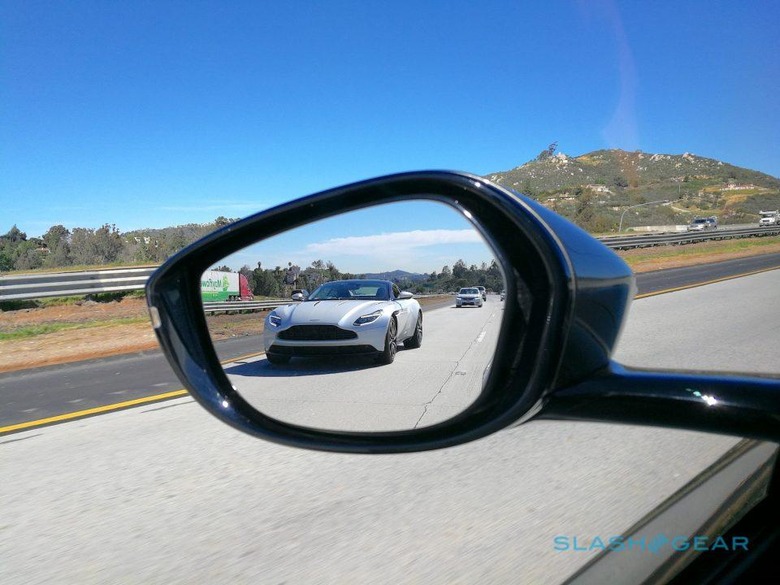 Peak torque arrives between 1,500 and 5,000 rpm, with maximum power at 6,500 rpm. Acceleration is, frankly, instantaneous. Turbo lag? What turbo lag? The DB11 is fast and ferocious, perpetually eager not only to take you via the scenic route but do its utmost to break land-speed records along the way. If you're not careful, "going to jail" speeds arrive with terrifying ease. Happily the Bilstein shocks and sizable Brembo brakes keep the car composed, even when you're shedding speed with extreme urgency. Slicing through canyon roads, Track mode kept the electronic nannying at bay until absolutely necessary – which I'm going to define as "when someone else's $214k+ supercar starts making motions toward the edge of the road" – while Normal mode proved a far tamer cruising experience around town.