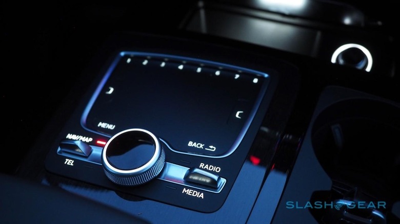 Along with the displays there's a refined version of the MMI interface. With your wrist resting atop the broad, flat shifter knob, your fingers fall atop a scroll wheel that not only clicks in to select but toggles left and right to open contextual menus. Just above it is a large glass touchpad for scrolling through the map as well as scribing out letters with a fingertip.