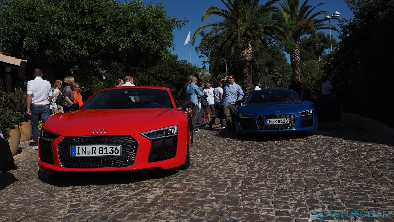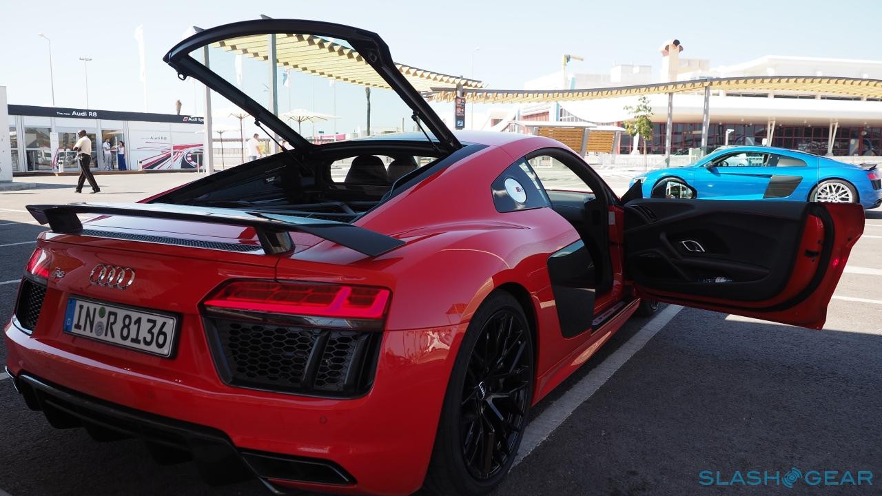 The scenery pales when you're faced with a parking lot full of cherry red V10 plus and blue V10 R8's, and it was the latter I found myself behind the wheel of first. On my own in the car, it's also where I realized just how low and wide the Audi is.