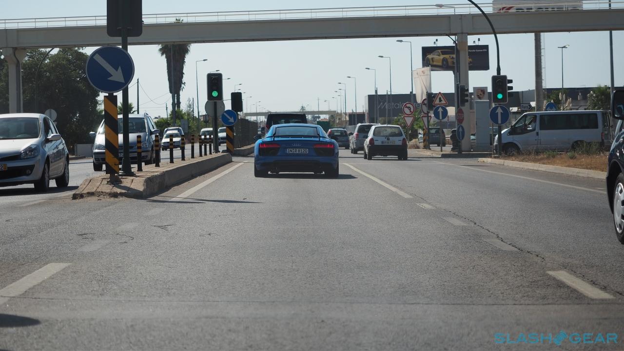 The roads (which at times felt more like sidewalks for one-way traffic) were narrow with parked cars everywhere, not to mention one memorable single-lane bridge that's exactly the width of the R8, bar a few scant inches on each side. Turns out, though, whizzing through traffic was a breeze. Though the R8 may be considerably larger than, say, the Alfa Romeo 4C, it sure drives like one: a wide car that drives far smaller than it looks.