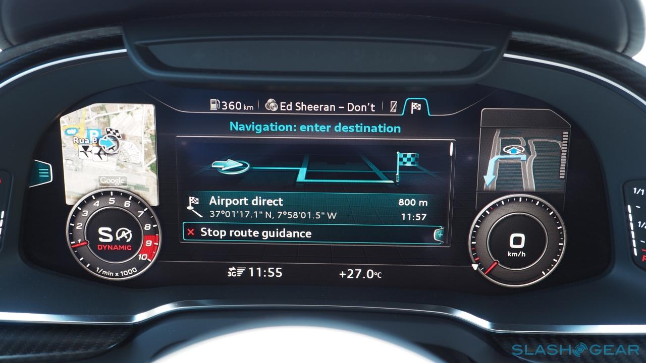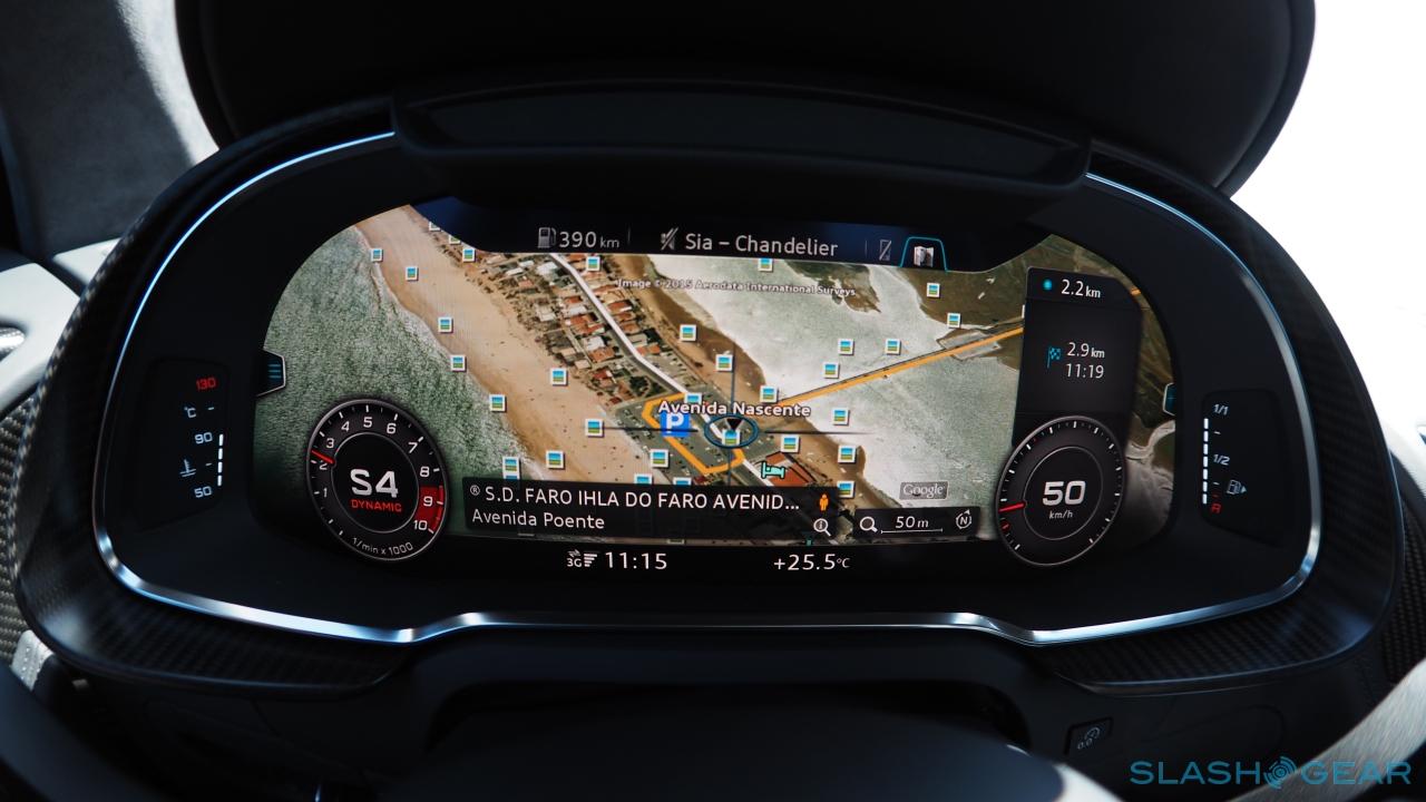 All that processing power is put to good use. Imagine cruising around in a foreign country without a nav system; that spells disaster. Audi's real-time Google Earth-based nav is best-in-class, and it's placed right alongside the tach and speedometer.
