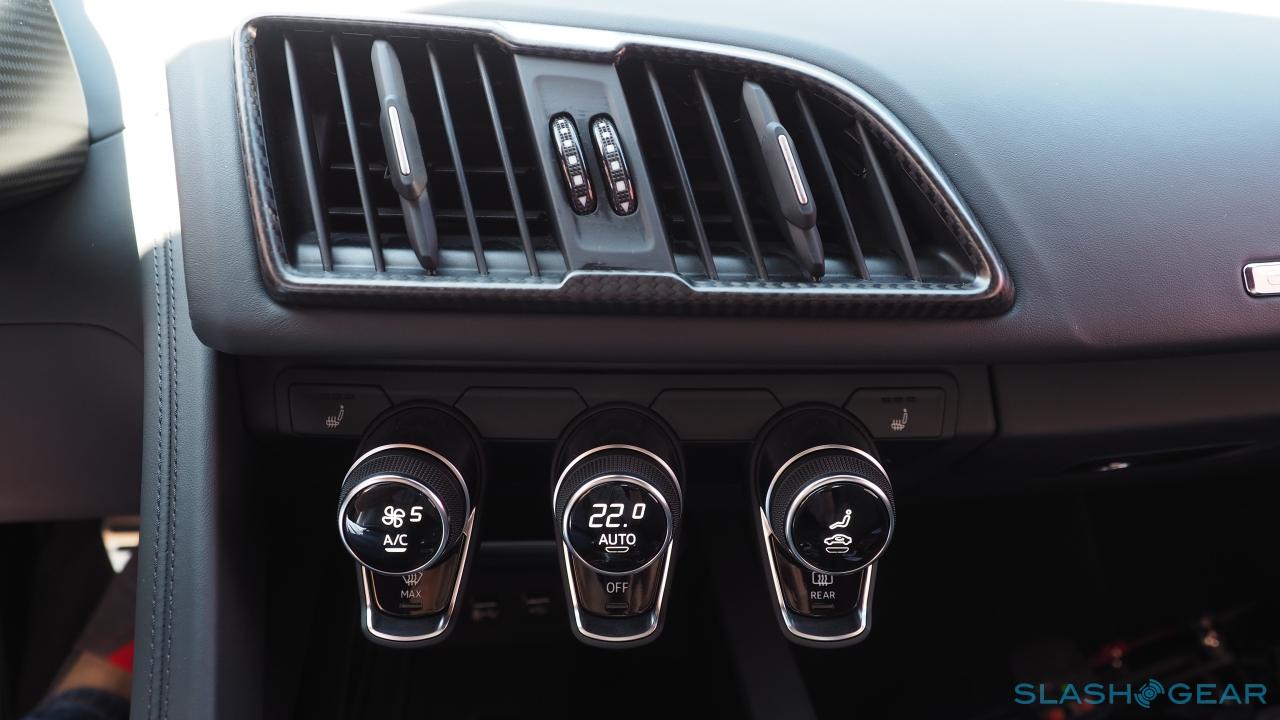 Optional on the R8 V10 but standard on the R8 V10 plus is a performance leather steering wheel; it does so much more than merely change direction, however.