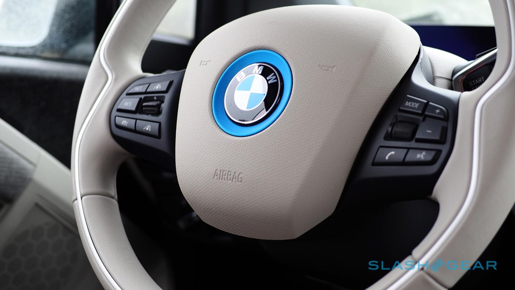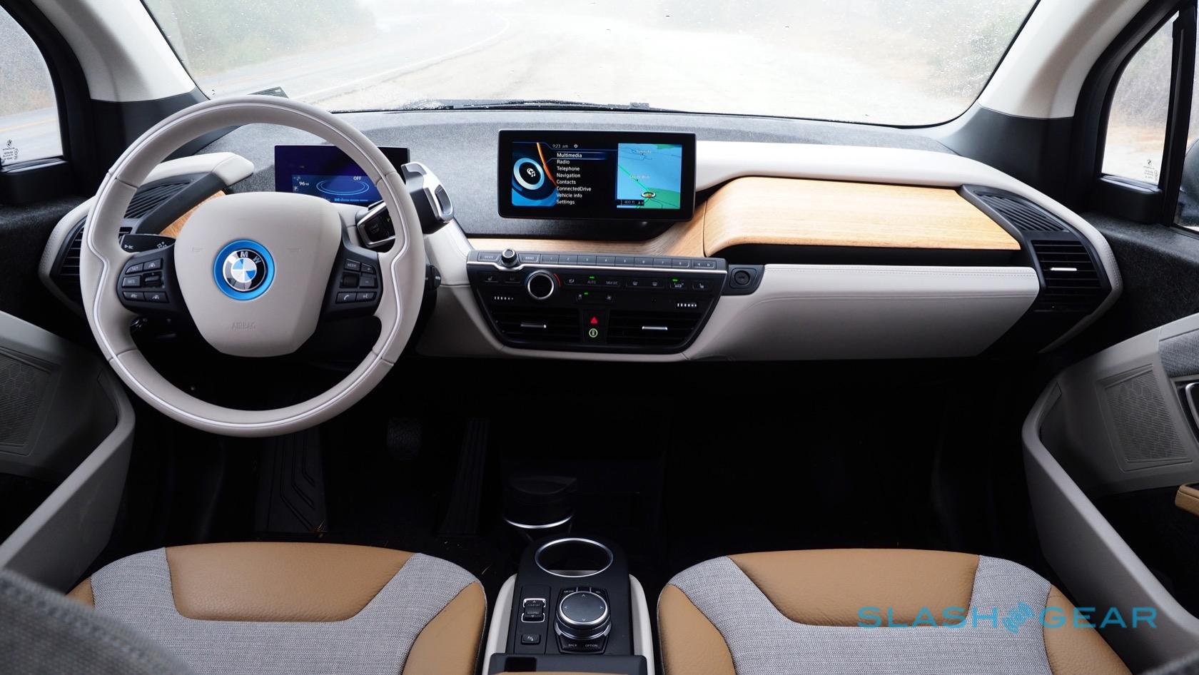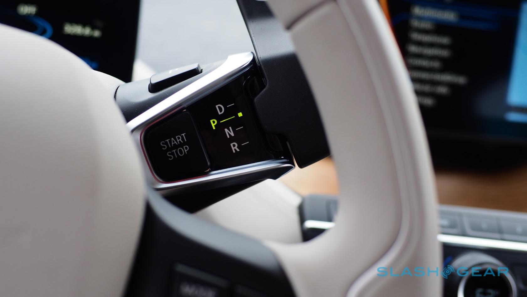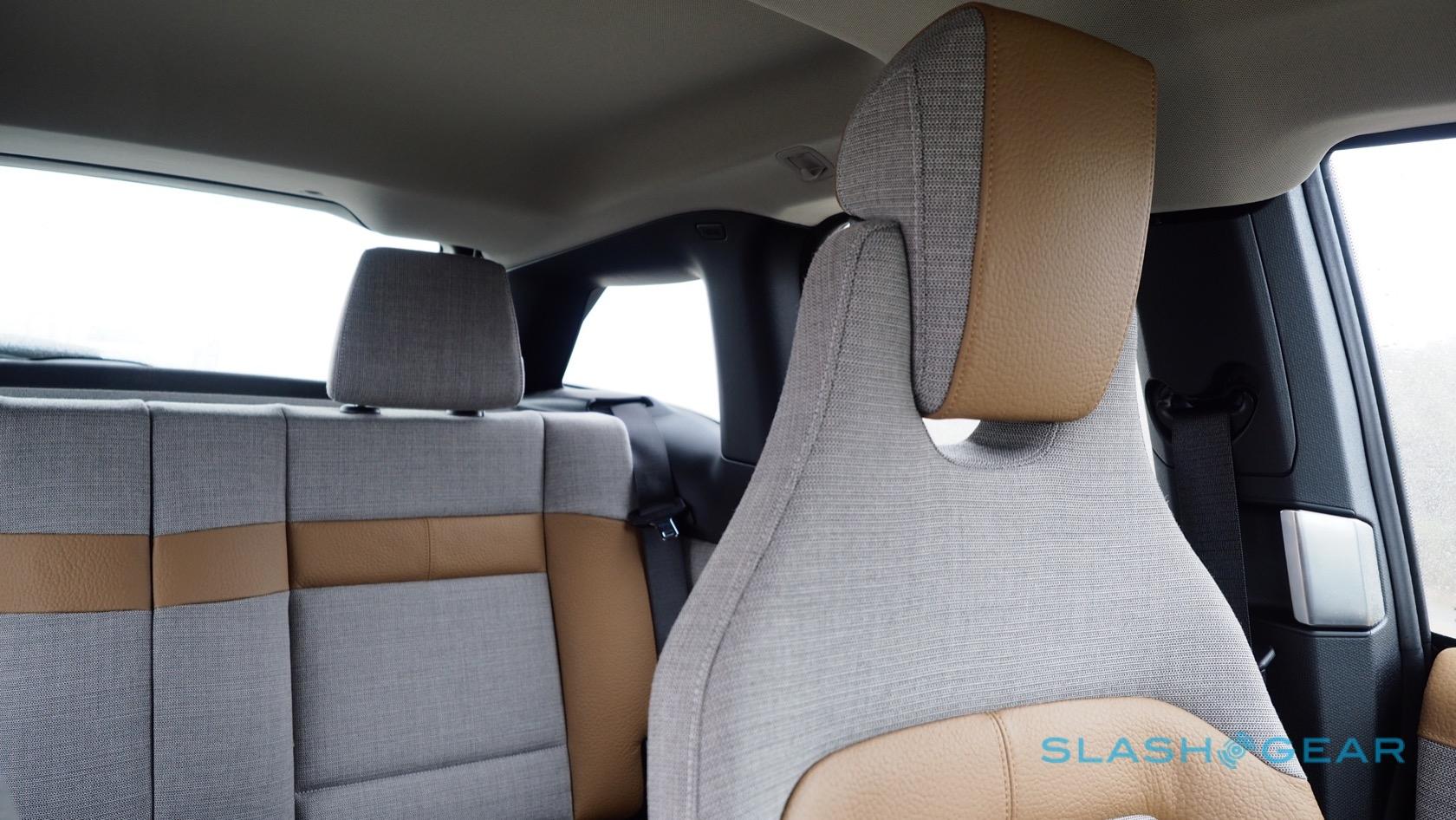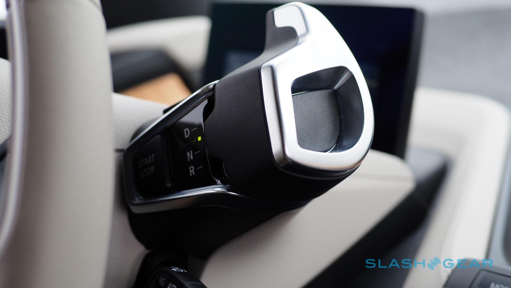 A second, also fairly small display sits behind the steering wheel. You select drive, reverse, or park with a stubby controller on the column, leaving most of the floor space open. There are some useful cubbies, heated front seats, parking sensors, and all of BMW's usual ConnectedDrive services, including the ability to remotely manage charging and cabin HVAC from the company's smartphone app.