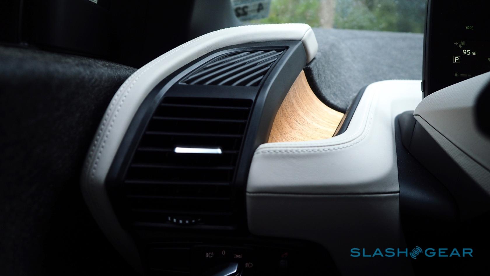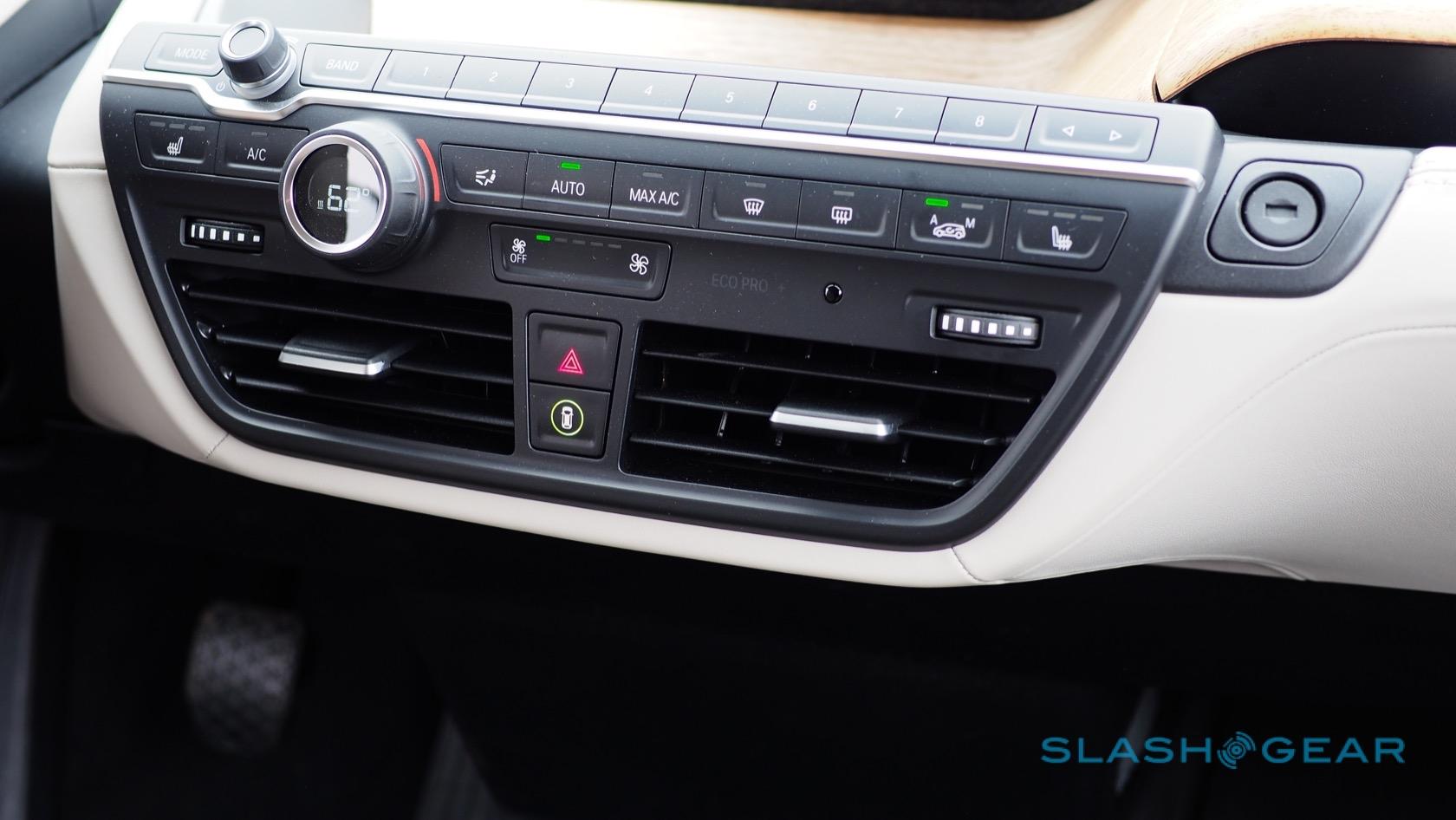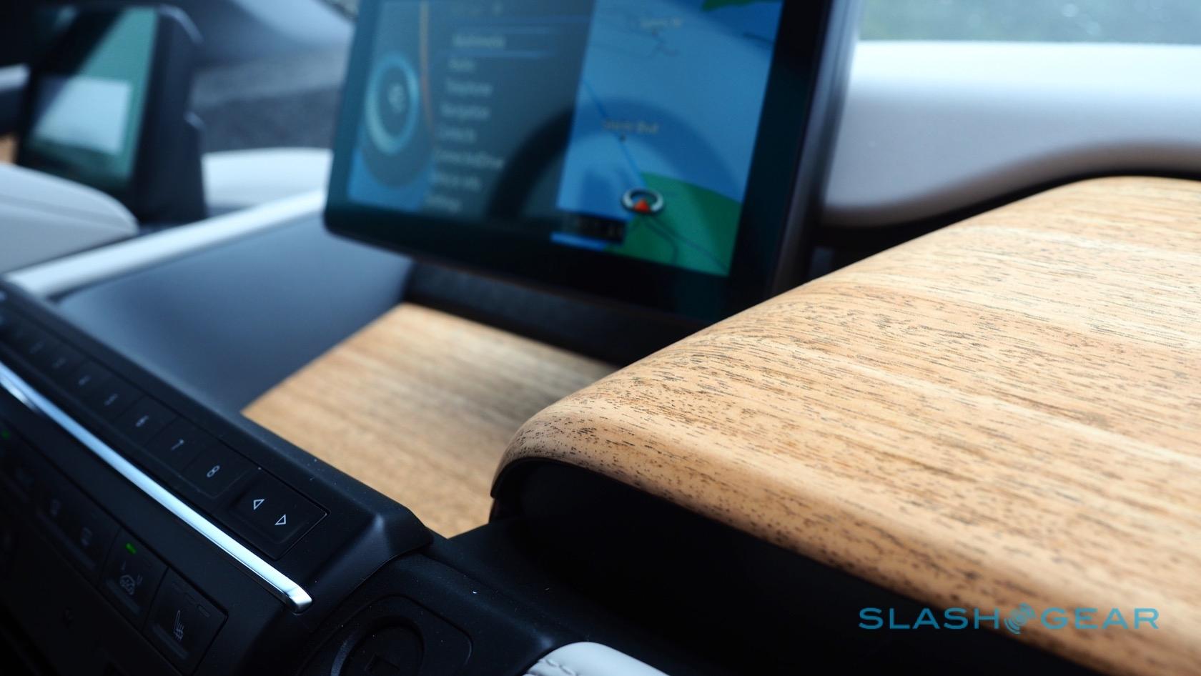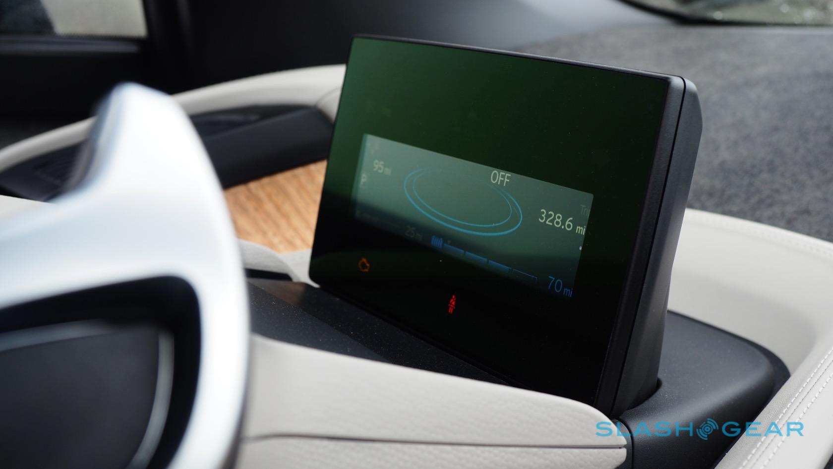 It doesn't fit with the traditional idea of luxury. However, it's absolutely in the right headspace for an environmentally-friendly vehicle. The center console is topped by an LCD display for BMW's iDrive system. It was a fairly pokey standard 6.5-inches on one i3 I drove, whereas the other had a larger screen with narrower bezels courtesy of the $2,350 Technology + Driving Assistant Package.