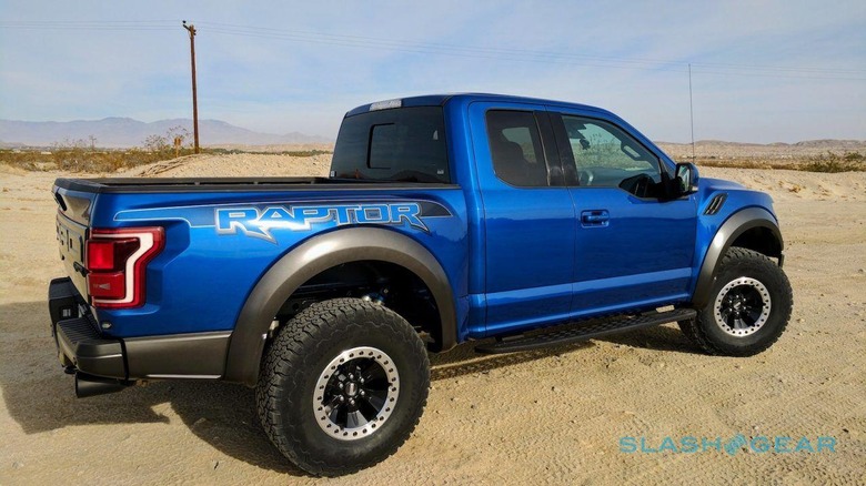 The Raptor isn't any ordinary truck, even though it's still a stock pickup straight from Ford's production line. Indeed, it's far from "normal" compared to the regular F-150: from the A-pillar forward, everything visible to the naked eye is exclusive to Raptor. Similarly, the rear third all the way back to the tailgate is, you guessed it, Raptor alone. Indeed, only the exterior of the mid-section – and the interior – is shared with the regular truck.