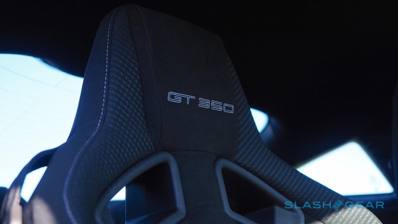 Inside, the key parts get the most polish. The steering wheel is wrapped in tactile, grippy Alcantara, while the gearshift knob is a palm-filling aluminum ball. Standard-fit racing seats – complete with GT350 headrest stitching – are as supportive as you'd hope, and finished in slip-resistant cloth and suede rather than leather. My slouching passenger complained of not being able to find an especially comfortable backrest angle, but from behind the wheel I had no complaints.