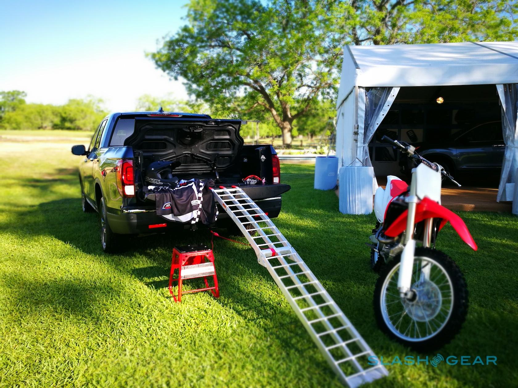 In fact, it's decidedly car-like. The steering has a similar feel to that of the Pilot – strongly assisted, and erring on the soft side – and the brakes are firm rather than grabby. Unlike the competition, Honda uses a unibody design rather than body-on-frame and the pay-off – along with independent suspension – is a welcome smoothing of road imperfections. Those impressions even maintain despite having a load hitched to the back: I tried towing a boat as well as some other hardware, and the Ridgeline masked the extra weight astonishingly well.