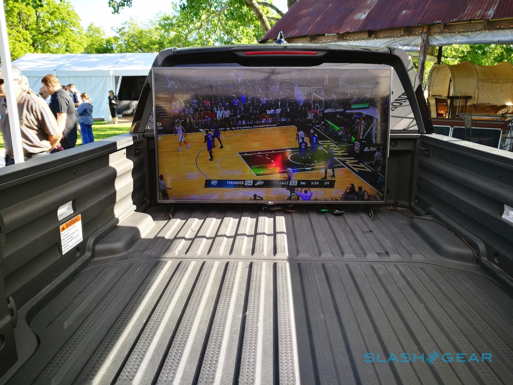 Honestly, though, you'll probably get more use out of the truck-bed audio system, which uses a cluster of "exciters" – think along the lines of the magnets in regular speaker cones – to turn the lining into one big music system, playing back whatever is piped through the head unit. It's surprisingly loud and clear, not to mention usefully waterproof and rated to withstand impacts to the liner.