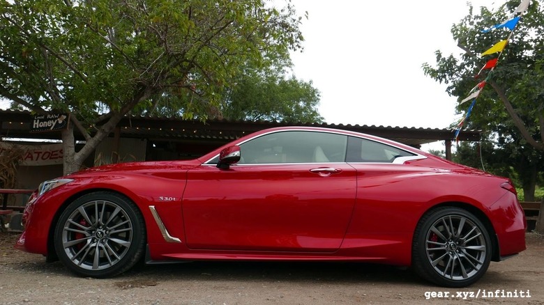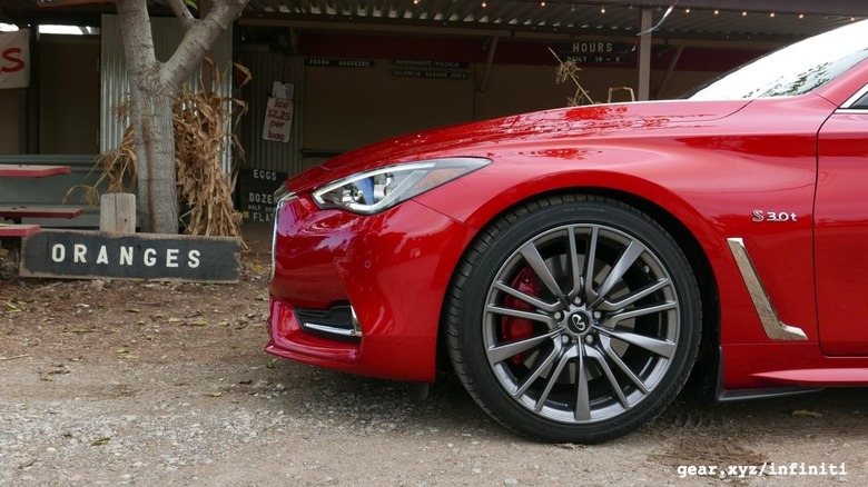 In any case, the fleet that awaited me in San Diego consisted exclusively of Red Sport 400 editions of the 2017 Q60, with Infiniti proudly highlighting its most engaging model. I began the morning behind the wheel of a rear-wheel drive edition of the car, with the intention of comparing it to one equipped with the coupe's optional all-wheel drive system later that afternoon. As with all versions of the Q60, this one was equipped with a standard seven-speed automatic transmission.