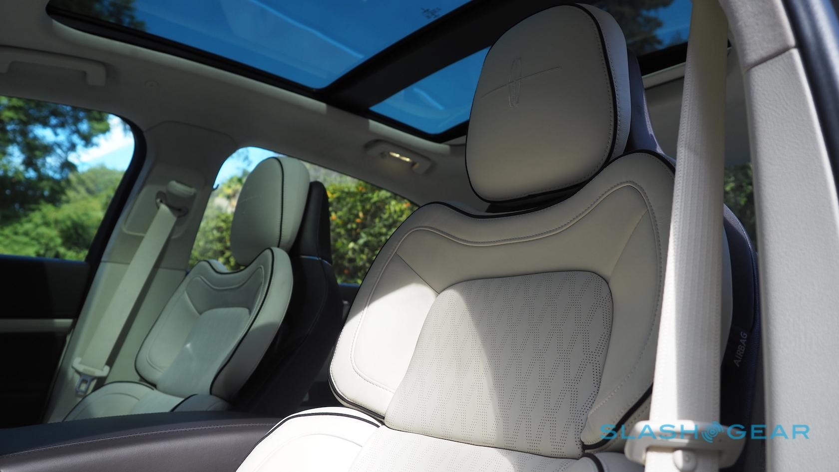 Lincoln's detailing is often exquisite. Nowhere is that more so than the door handles, the company switching to electronic latches. Rather than breaking up the door panels with mechanical ugliness, they're sleek chrome ripples in the metal that runs along the shoulder line. Squeeze the switch inside and the door pops open silently; push it closed, and the latch grabs at the last moment and draws the whole thing shut. That ribbon of metal encompasses the side mirrors too, almost sculptural in their poise.