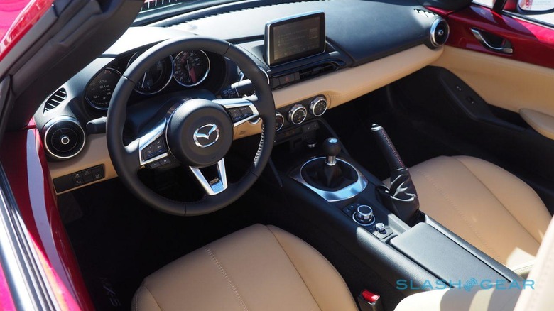 Part of the Miata's long-standing charm is that you can tell where Mazda saved its dimes in order to keep the overall price competitive. The MX-5 RF will only be offered in Club (from $31,555) and Grand Touring (from $32,620) trims – there's no entry-level Sport like the soft-top – though even in top-spec, some of the plastics in the cabin feel a little creaky or flex a little too readily at the touch. The silver trim is fooling nobody with its pretense at being metal.