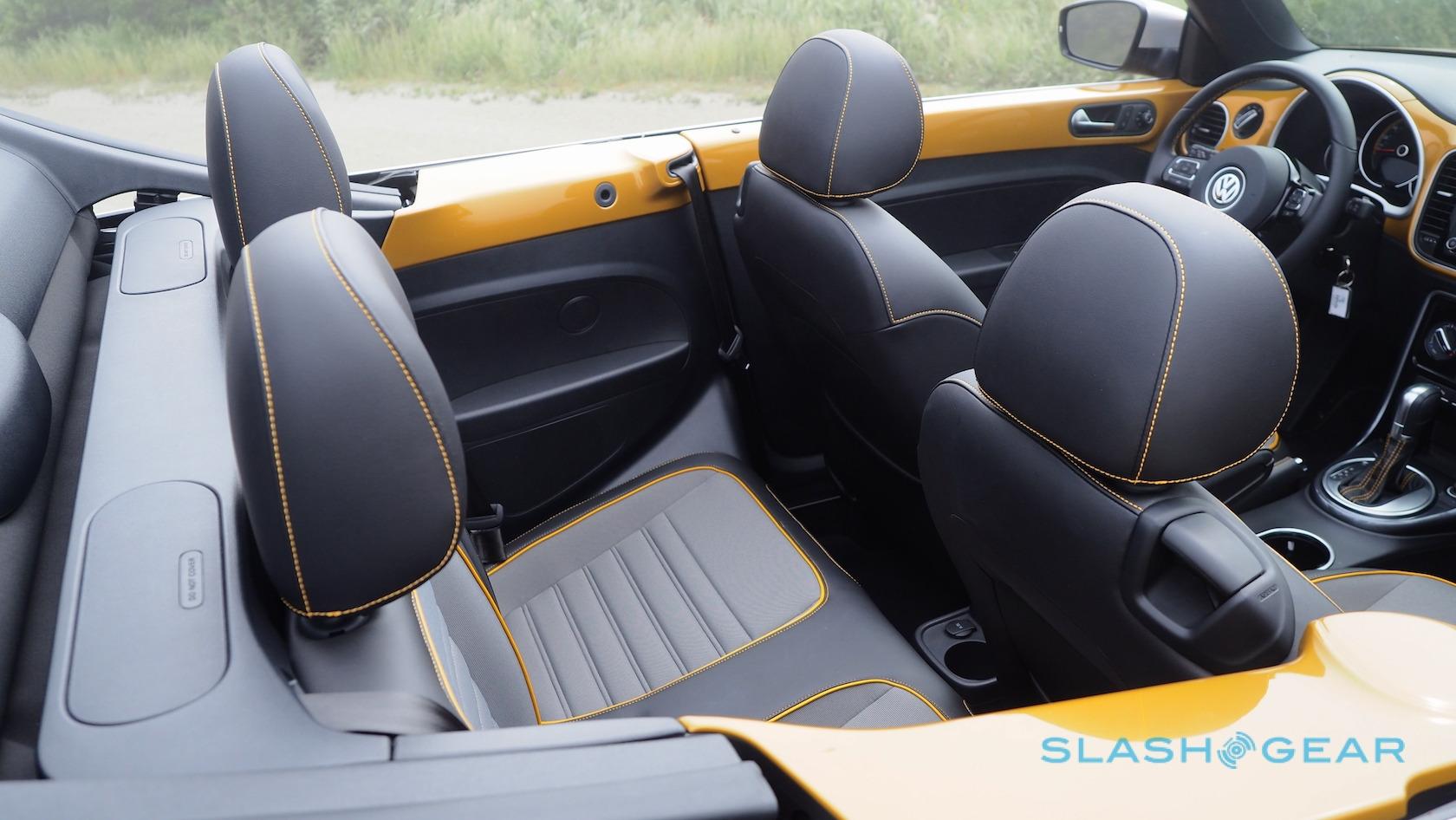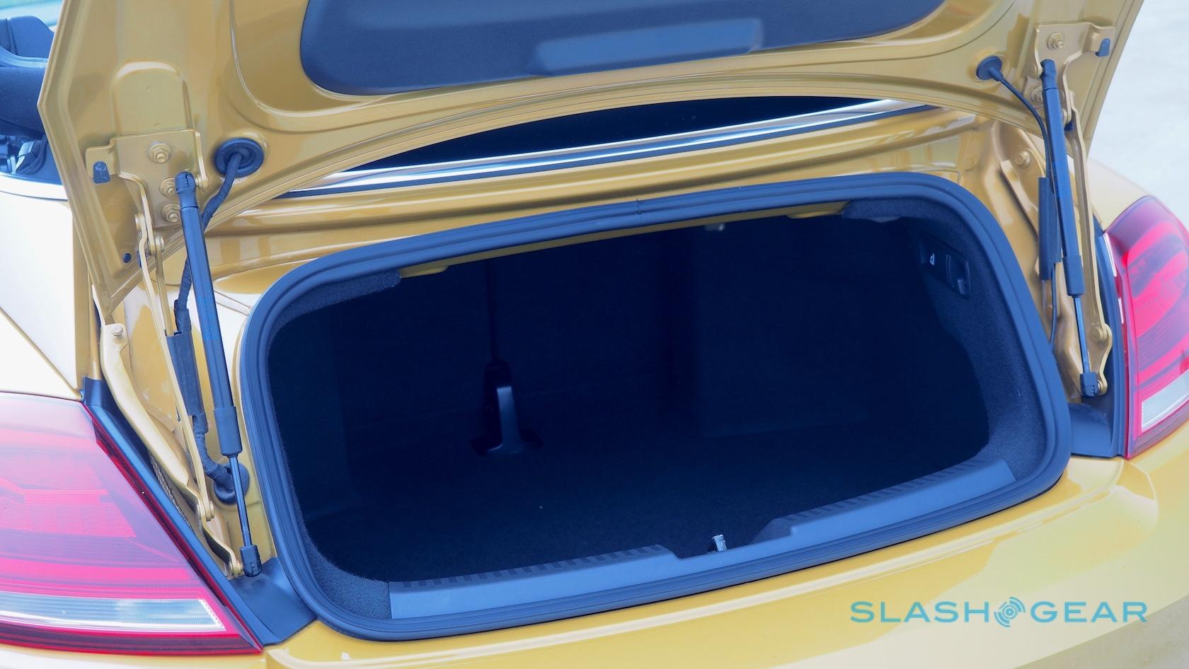 Rear space lacks legroom and, courtesy of the Beetle's distinctive arched roofline, headroom too. Those back there get to argue over who uses the single cupholder as well. Trunk capaciousness is limited not so much by the convertible top intruding as the small hatch it leaves space for. Navigate around that compromise, and you'll find 7.1 cubic feet to play with.