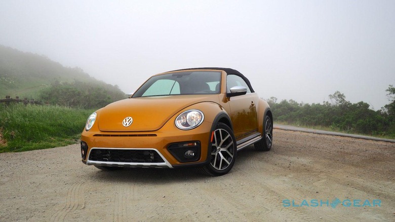 Make no mistake, though, this is about as sensible a convertible as you'll find in the segment. Underneath the Sandstorm yellow metallic paint, the contrast bodywork, and the mildly raised suspension you're looking at VW's tried and tested formula of a 1.8-liter turbocharged four-cylinder engine mated to a 6-speed automatic. It may look like it could scamper across California beaches and wade through the surf, but its front-wheel drive setup means that's frankly ill-advised.