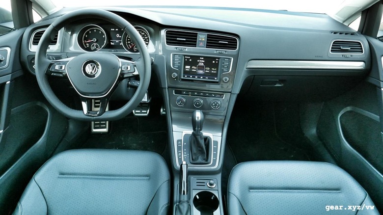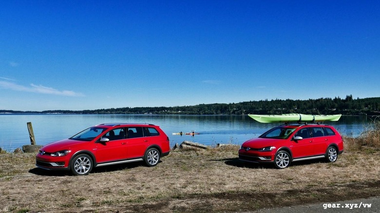 Mechanically, there are few differences to be found when comparing the Volkswagen Golf Alltrack to its SportWagen sibling. Both make use of the same 1.8-liter, four-cylinder engine, which has been turbocharged to produce 170 horsepower and 199 lb-ft of torque, and each can choose between either a six-speed manual (first-quarter of 2017 delivery) or six-speed dual-clutch automated manual gearbox. All-wheel drive is standard with the Alltrack, of course, but for 2017 it's also available as an option for the base model SportWagen, where it delivers an identical 22-mpg city and 30-mpg highway (figures that are roughly 18 percent worse than the front-wheel drive family Golf, although the fuel tank has grown by 1.3 gallons to make up for the difference).