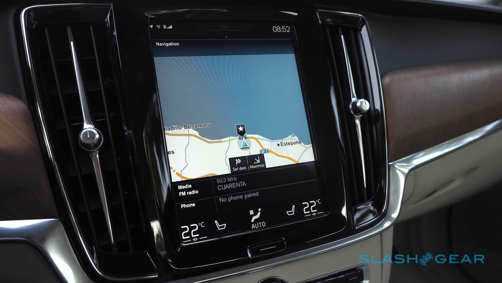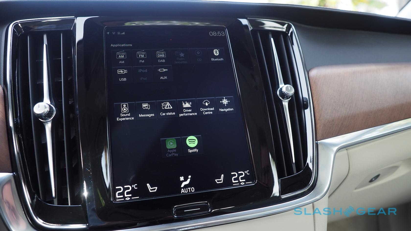 Swipe to the left and you get the applications list, where you'll find the Spotify app as well as Yelp and Pandora. These can use the S90's baked-in modem – you'll need a Spotify premium account, but it doesn't require your phone be connected – now supporting 4G LTE rather than the 3G the XC90 launched with. It's also where CarPlay launches from, Apple's iPhone interface still sharing half the screen with Volvo's UI. Eventually, the company tells me, Android Auto will be added too – including retroactively as an upgrade for existing XC90 owners – but there's no timescale for its arrival.