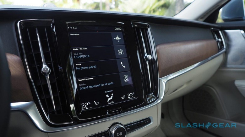 Swipe to the left and you get the applications list, where you'll find the Spotify app as well as Yelp and Pandora. These can use the S90's baked-in modem – you'll need a Spotify premium account, but it doesn't require your phone be connected – now supporting 4G LTE rather than the 3G the XC90 launched with. It's also where CarPlay launches from, Apple's iPhone interface still sharing half the screen with Volvo's UI. Eventually, the company tells me, Android Auto will be added too – including retroactively as an upgrade for existing XC90 owners – but there's no timescale for its arrival.