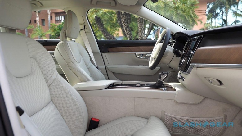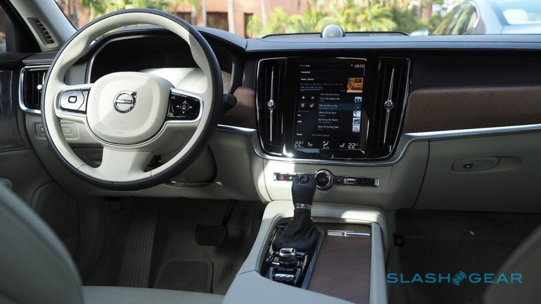 It's Pilot Assist that Volvo is most proud of, though, a standard feature on the S90 and now upgraded to version two versus what was launched on the XC90. In the SUV, Pilot Assist could automatically accelerate, brake, and steer around corners at city speeds; in the S90, it now works at up to 81 mph.