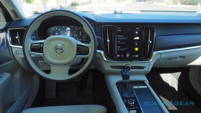 Whichever finish, it's a deeply pleasant place to find yourself. Most of the controls are accessed through the large, portrait-orientation touchscreen, though you do get a physical volume knob as well as quick access to the drive modes and other select features. Sensus' UI – which spreads navigation, infotainment, driver assist features, and phone connectivity, as well as the V90 Cross Country's built-in 4G LTE hotspot, across three side-scrolling panes – takes a few minutes familiarization, but is definitely one of the better systems out there right now.