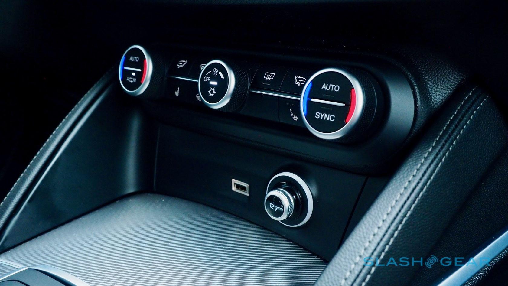 Alfa launched the car with a single engine option, a 2.0-liter turbocharged four-cylinder. It has 280 horsepower and 306 lb-ft. of torque, and the automaker says it'll do 0-60 mph in 5.4 seconds then keep going all the way to 144 mph. In the Stelvio, it's paired with an 8-speed transmission, which is great, and a jerky stop-start feature, which is not.