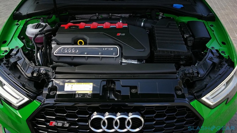Audi Sport may be a new name, but it has some serious heritage. For many enthusiasts, it's best-known for its less mainstream engines: the TT RS and RS 3, for instance, are rare breeds primarily because they're powered by a 2.5-liter, 5-cylinder engine. The atypical number of cylinders pushes out 400 HP and 354 lb.-ft. of torque, with maximum torque kicking in at 1,700 rpm and keeping up all the way through 5,850 rpm. In 2018 form, Audi Sport has squeezed 33 horsepower more and shaved off 57.3 pounds, thanks in no small part to the switch to lightweight aluminum for the crankcase and magnesium for the oil pan.