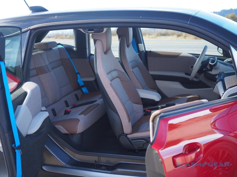 I do appreciate BMW's attempts to use atypical materials, though. Swathes of the door panel and dashboard use a mixture of hemp and plastic, along with kenaf, a species of mallow. The leather panels on the seats are tanned with olive leaves, too, making them greener to produce, while its fabric uses plastics from recycled bottles. They're things you notice every time, a visible reminder that BMW is thinking outside of the box.