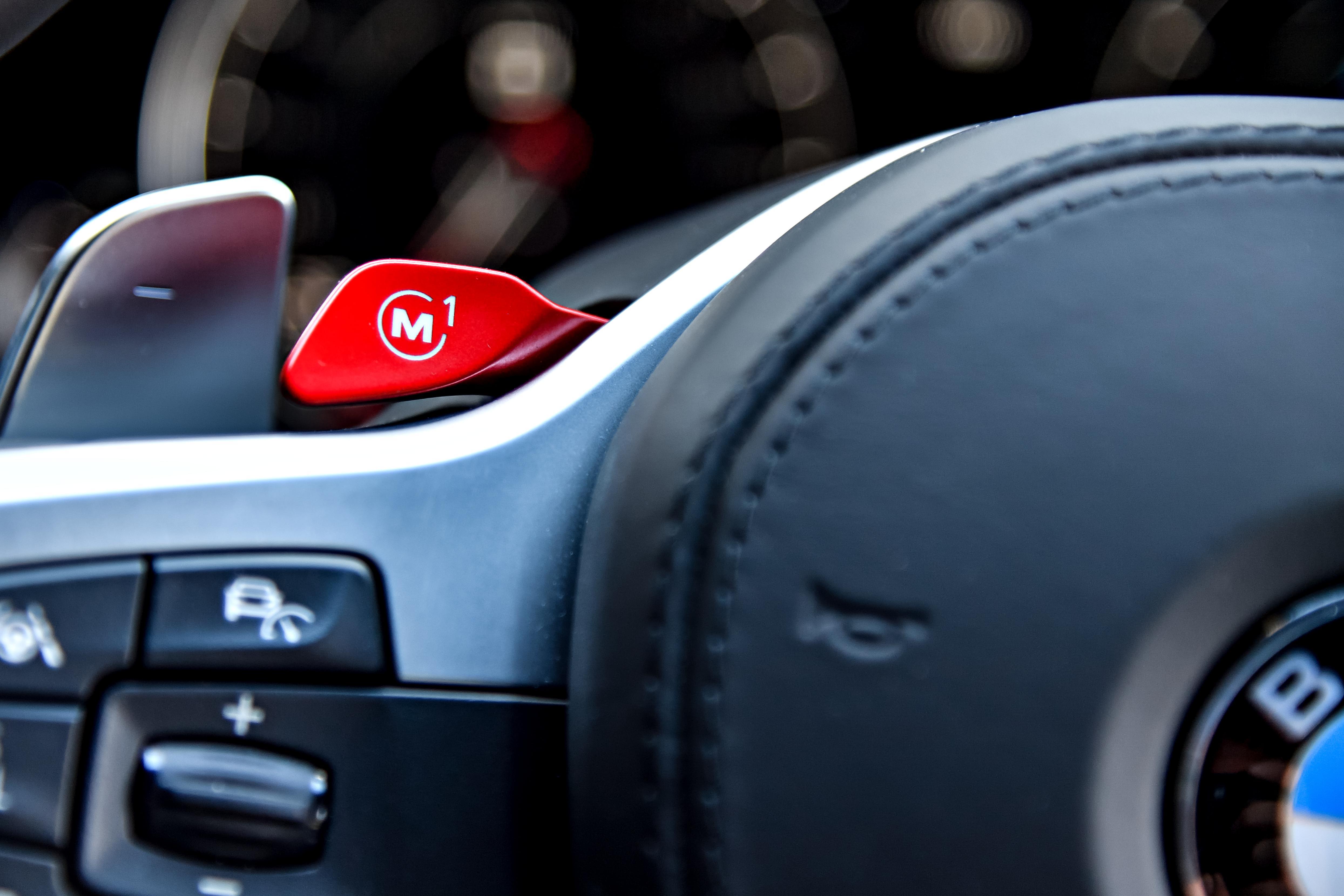 Since it's a BMW, and since its an M car, there are some tricks along the way. I particularly liked being able to quickly select how fast the gears shift via the gear lever. BMW measures it in bars, of which there are three. On the road, the first bar is more than sufficient, while BMW programs the second bar as the default for both the M1 and M2 quick-mode select keys, which are mounted on the steering wheel and offer speedier access to your favorite configurations. You can't miss them, either, because they're bright red anodized metal.