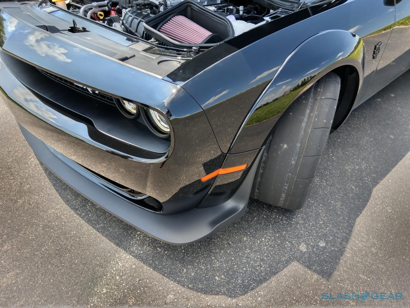 Rather than the bolted-on wheel flares of the typical DIY drag racer, Dodge decided to make the Demon's as cleanly integrated into the body as possible. That involved laser cutting both the front and rear fenders, and then and laser-welding in an armature that the flares could attach to. Keeping the aggressive stance going, there's also a new front splitter that both widens the fascia and integrates into the lower part of the flares, and is fitted with new amber side markers. "As heroic as what the horsepower was going to be," Trostle says, "so the hood, the flares, everything about it just had to be over the top."