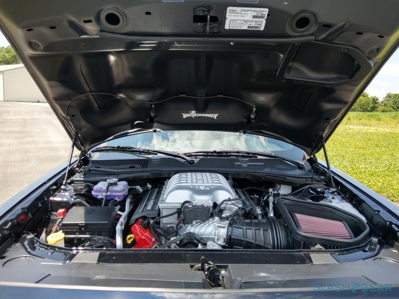 Turning the Hellcat engine into a Demon required twenty-five component changes. Boost pressure is up 20-percent, supercharger capacity increased from 2.4 to 2.7 liters, there were changes to the valvetrain and fuel injection, new pistons, and the conrods and crankshaft peaks increased peak revs from 6,000 rpm to 6,300 rpm. In the process, the supercharger gobbles up more air and fuel than any other production car: there simply isn't another engine in the world that can beat the 6.2-liter supercharged Hemi in fuel flow rate.