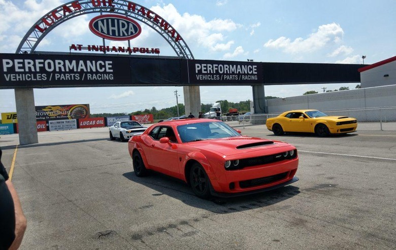 Experiencing the Demon's raw power first hand left me in awe, but after seeing my colleague's results for one of his best runs of the day – 0-60 mph in a spec-matching 2.3 seconds – I was just short of losing my mind. Actually hitting the on-paper numbers demand ideal conditions, of course, including yanking out the front and rear passenger seats for weight savings, and a proper launch. Dodge will take care of the seats for you, or alternatively sell you space for the kids in the back for $1 should you really want them.