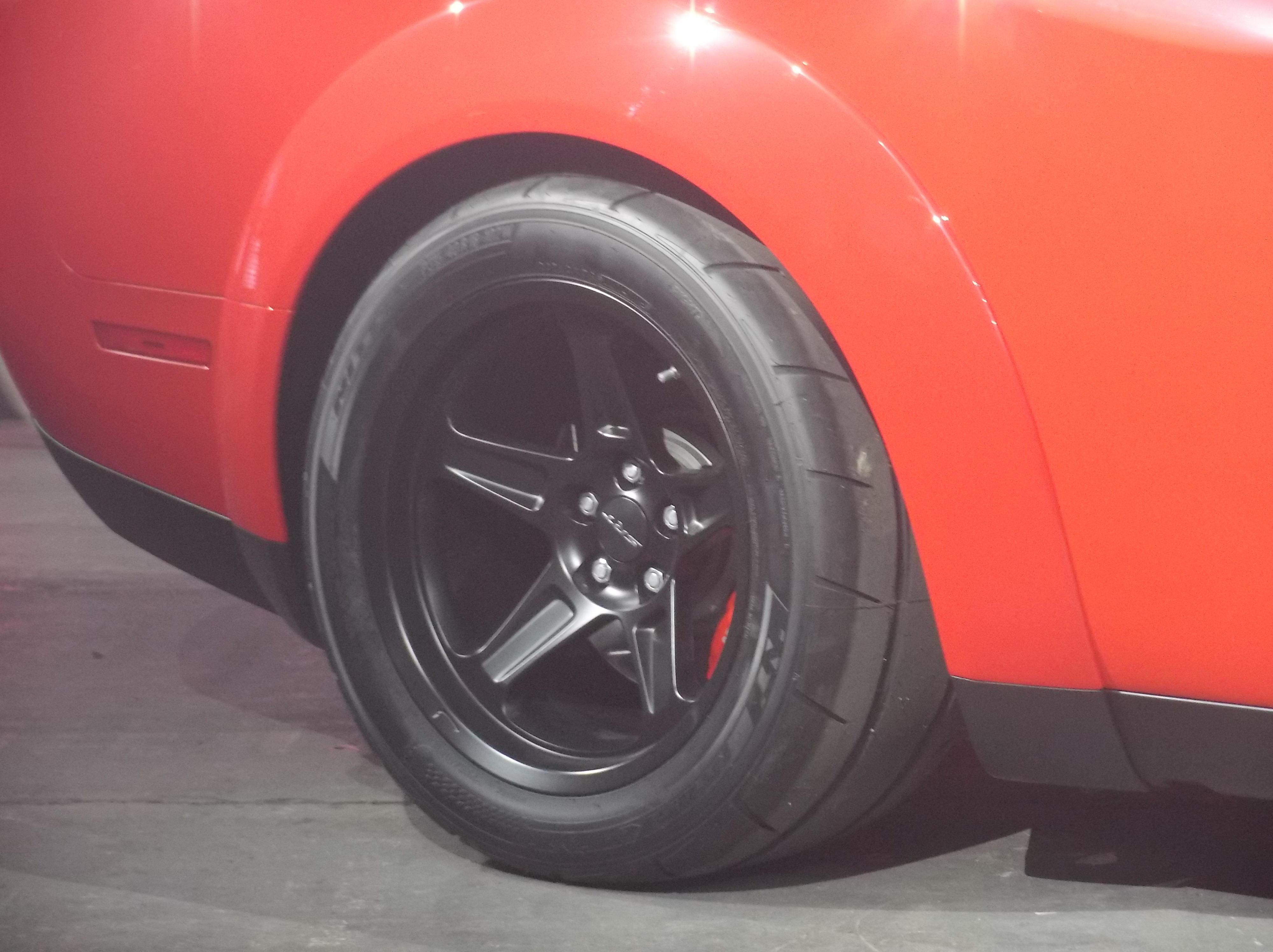 That obscene amount of power is only part of the story. In order to achieve what Chrysler is calling the world's fasts 0-60 time of 2.3 seconds (along with the fastest production quarter mile time on the market of 9.65 seconds), the Dodge Challenger SRT Demon relies on a transbrake, 315/40/R18 drag radial rear tires from Nitto, and a unique suspension setup that is designed to maximize rearward weight transfer (and is softer than that found in the Hellcat). A 'Launch Assist' feature is also present to reduce wheel hop without arresting forward momentum, which should save more than a few pumpkins from grenading on the starting line. The move from a 38-spline to a 41-spline rear end, and the strengthening of the prop shaft, differential housing, and half shafts will also go a long way towards preserving driveline longevity.