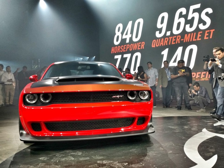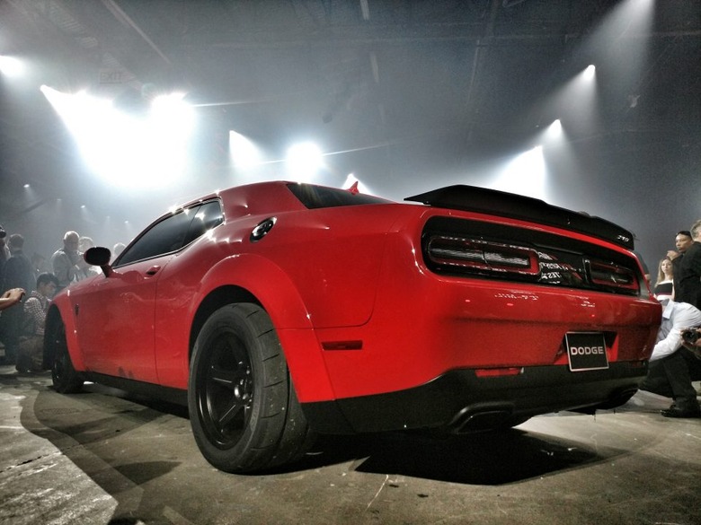 That obscene amount of power is only part of the story. In order to achieve what Chrysler is calling the world's fasts 0-60 time of 2.3 seconds (along with the fastest production quarter mile time on the market of 9.65 seconds), the Dodge Challenger SRT Demon relies on a transbrake, 315/40/R18 drag radial rear tires from Nitto, and a unique suspension setup that is designed to maximize rearward weight transfer (and is softer than that found in the Hellcat). A 'Launch Assist' feature is also present to reduce wheel hop without arresting forward momentum, which should save more than a few pumpkins from grenading on the starting line. The move from a 38-spline to a 41-spline rear end, and the strengthening of the prop shaft, differential housing, and half shafts will also go a long way towards preserving driveline longevity.