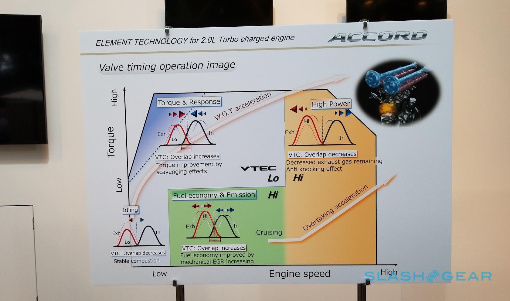 The 2018 Honda Accord won't go on sale until later this year, so there's still time for the engineers to make minor tweaks. As such, there's little info regarding final horsepower and torque. Still, Honda has confirmed that the new 2.0-liter is a derivative of the Civic Type-R's badass engine, while engineers also told me that, unlike the premium fuel requirement of the Type-R, the Accord will be fine with regular gas. Since the Type-R offers 306 horsepower and 295 lb.-ft of torque, I'd dare say that the Accord will settle on around 50 hp less and a drop of roughly 40 lb.-ft of torque.