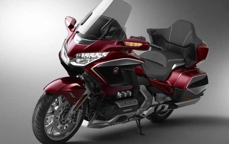 As for the engine, that's a liquid-cooled, horizontal opposed six-cylinder. Though the layout is carried over, Honda says, the new engine is smaller, lighter, and more fuel efficient. Paired with a six-speed manual transmission it drops almost 14 pounds, in fact, while the shorter length has meant Honda can push its positioning forward in the bike's chassis.