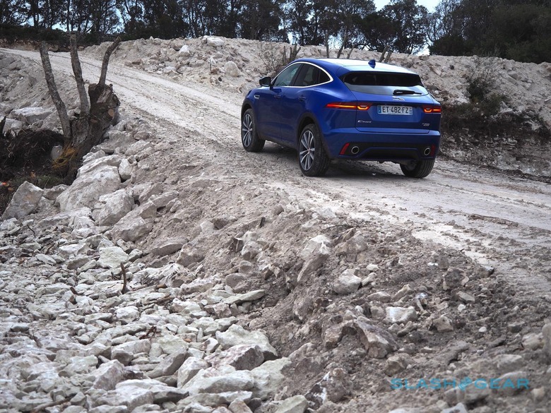 There's no dedicated off-road mode – you'll still need to look to an Evoque if you want a crossover with hill-descent, for instance, and the baby Range Rover's 8.5-inches of ground clearance towers over the Jaguar's 6.4-inches – but even in Comfort the E-PACE handled an extended foray away from the asphalt handily. I'm not talking anything too arduous; think along the lines of poorly-maintained sand and rock tracks, rather than something Dakar-worthy. Nevertheless, I suspect it's more than most E-PACE owners (or crossover drivers in general) would typically tackle, and the Jaguar scrambled over it without pause.