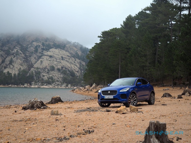 Torque vectoring can push extra power to the corners with the most traction, or the outside wheels in aggressive turns; there's a nifty little display that shows you just where the grunt is going if you're so inclined, but the overall upshot is that the E-PACE feels sure-footed even in curving mountain turns. The rear axle has twin wet clutches which can be locked for a more rear-wheel drive feel, though that's a decision left to the computer, not driver's choice.