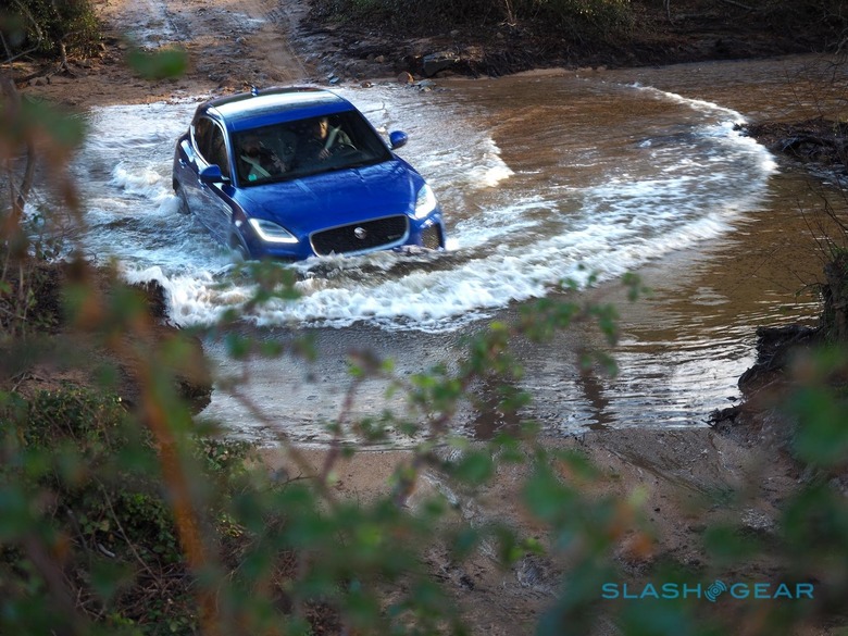Then there's the rough stuff. The E-PACE, with its true off-road underpinnings borrowing from Land Rover's Evoque and Discovery, has an advantage over rival car-based crossovers, and Jaguar is hoping to capitalize on that for those who might find the front-wheel drive bias – even in AWD form – to smell just a little bit like blasphemy for the brand. Up to 90-percent of the power can be pushed forward or back, though most of the time it's the front wheels doing the work for economy reasons. That's not to say the E-PACE isn't equipped for the mud.