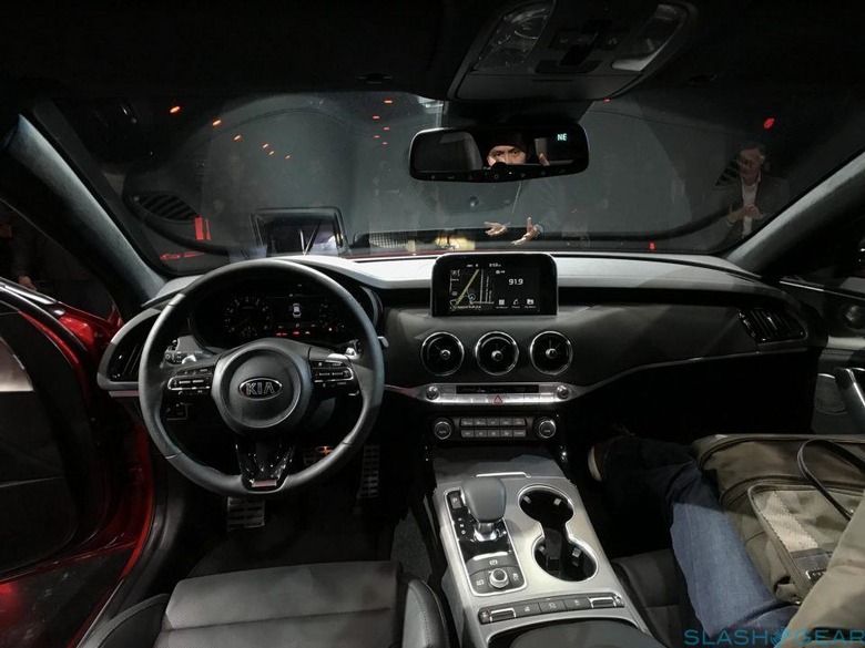 Those wanting more performance, meanwhile, will have the option of a 3.3-liter twin-turbo V6, expected to muster 365 HP and 376 lb-ft. of torque from 1,300-4,500 rpm. With that, Kia says, it's expecting a 5.1 second 0-62 mph time, and a top speed of 167 mph. Both engines will be paired with an eight speed automatic transmission, with paddle-shifters.
