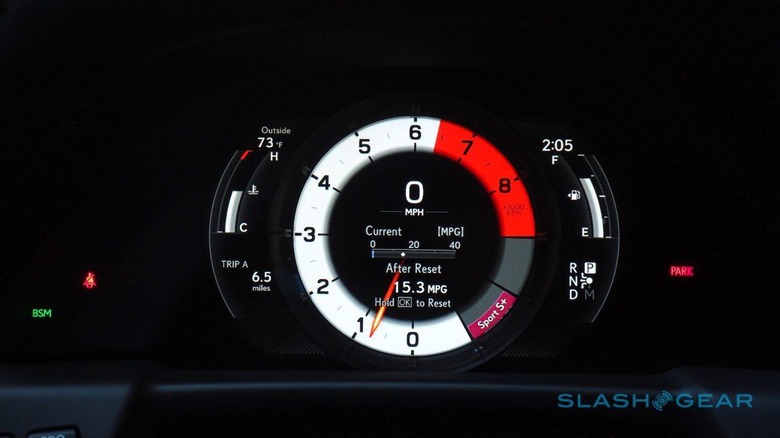 The result, Lexus says, is the "rhythmic shifting" of a regular car without the rubber-band feel of a CVT. As with its gas-only counterpart, I'm just not convinced it's required, however, though it does pay dividends when it comes to economy. Lexus is quoting 25 mpg in the city, 33 mpg on the highway, and 28 mpg combined with the RWD hybrid, adding up to the potential of 600+ miles from a full tank of gas. You lose a little of the urgency of the more powerful car – 0-60 mph comes in 5.1 seconds, rather than 4.6 – but it's a hushed, smooth place from which to do your bit for Mother Earth.