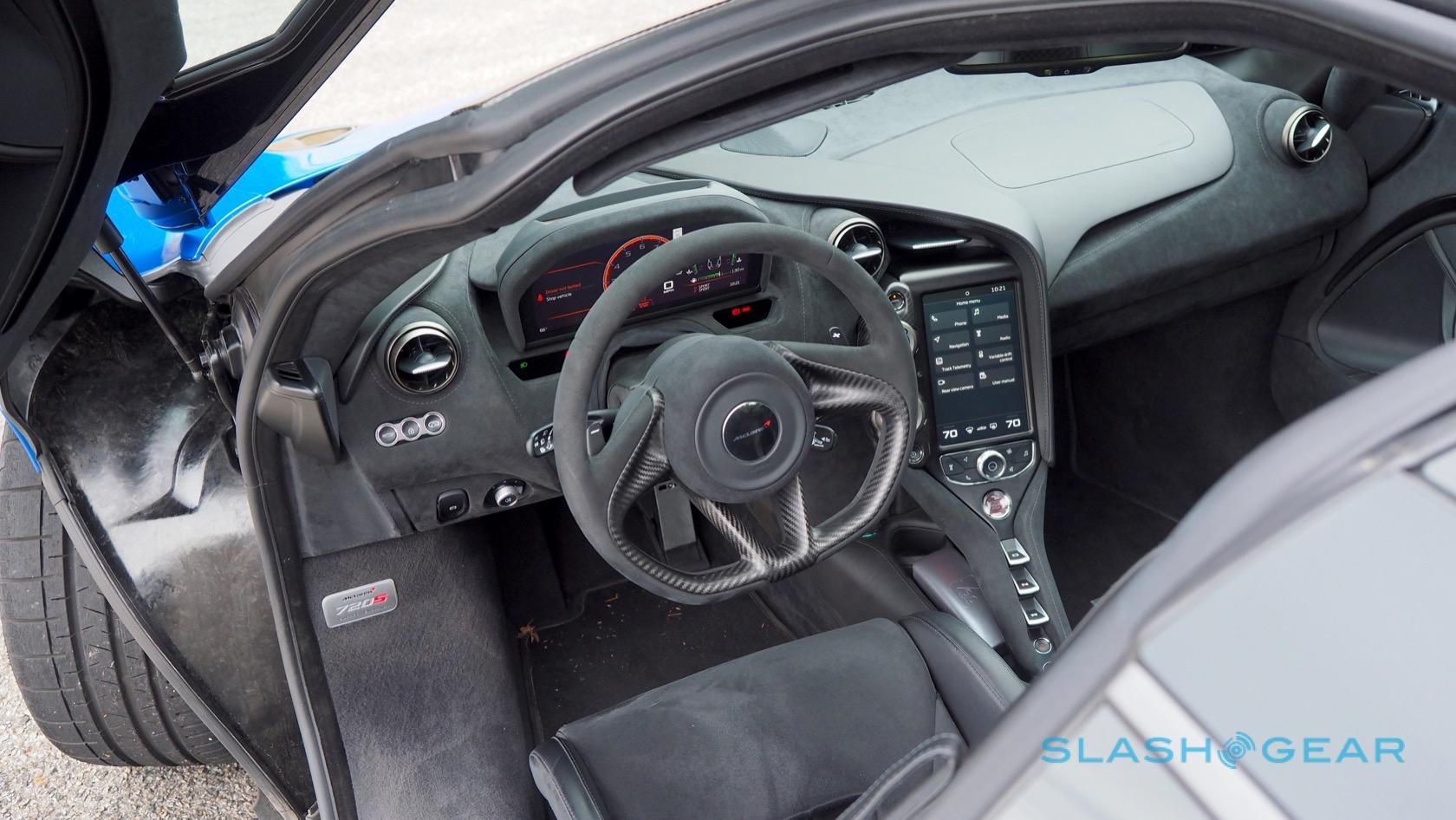 It's unusually easy to live with, though, for a performance coupe. The "dihedral" doors, which hinge up and outward, now cut into the roof: there's less of the duck-and-slide movement required, which can make entering the 570 and 650 cars borderline awkward. Opt for the standard seats and it's an oddly plush cabin, almost GT-like. Better, I feel, to go for the $6,210 carbon fiber racing seats, with their fixed shells and uncompromising support.