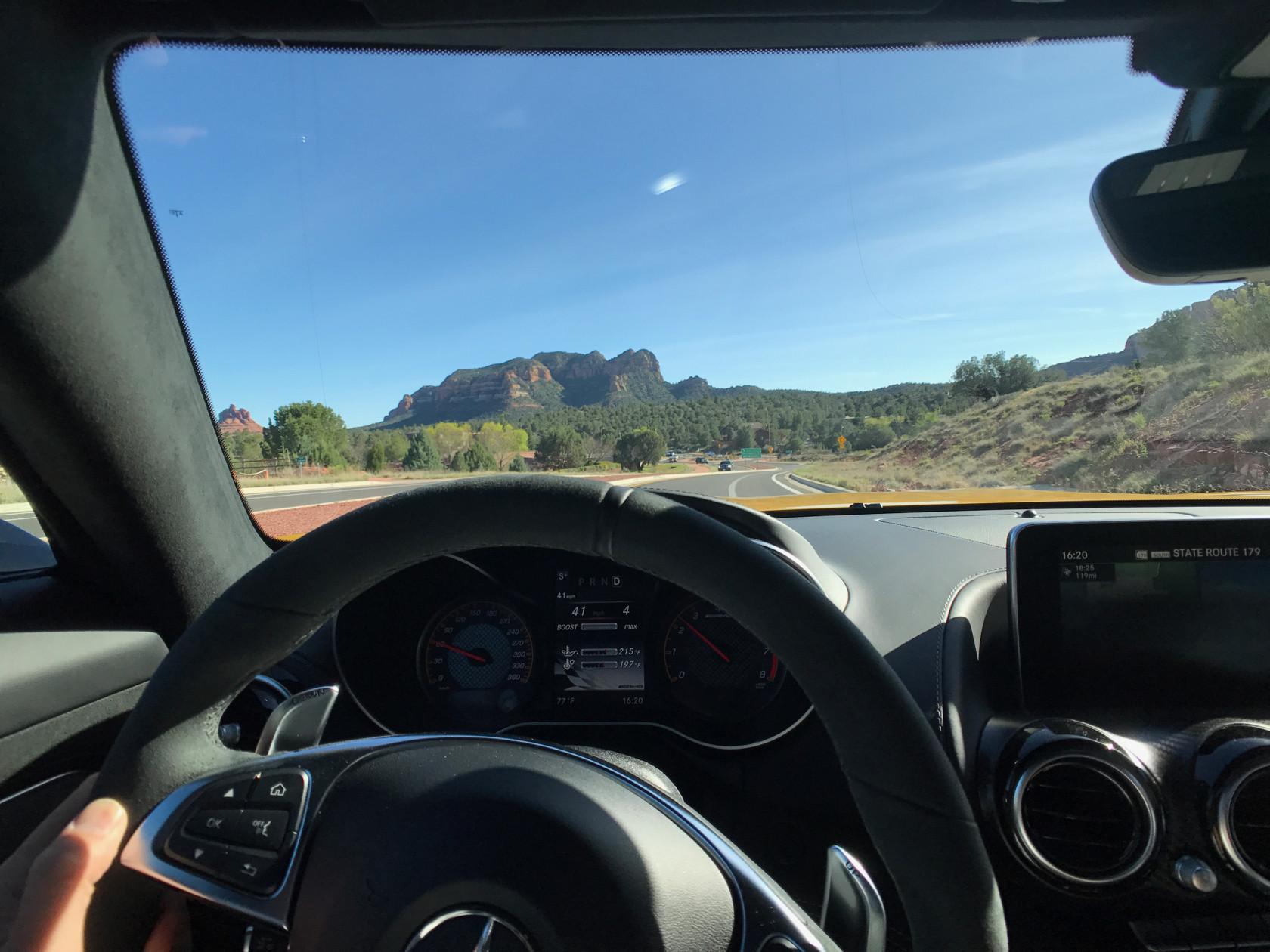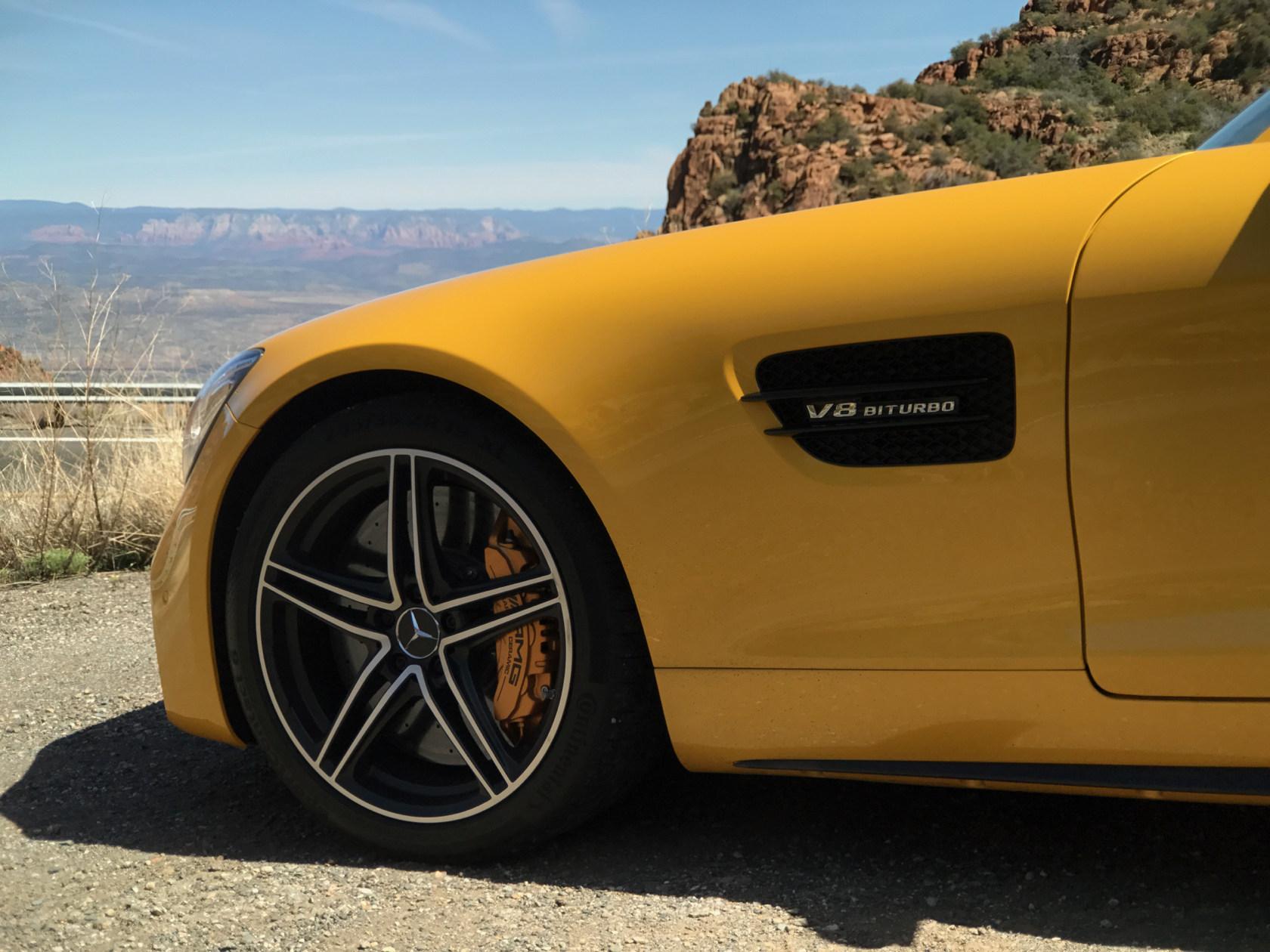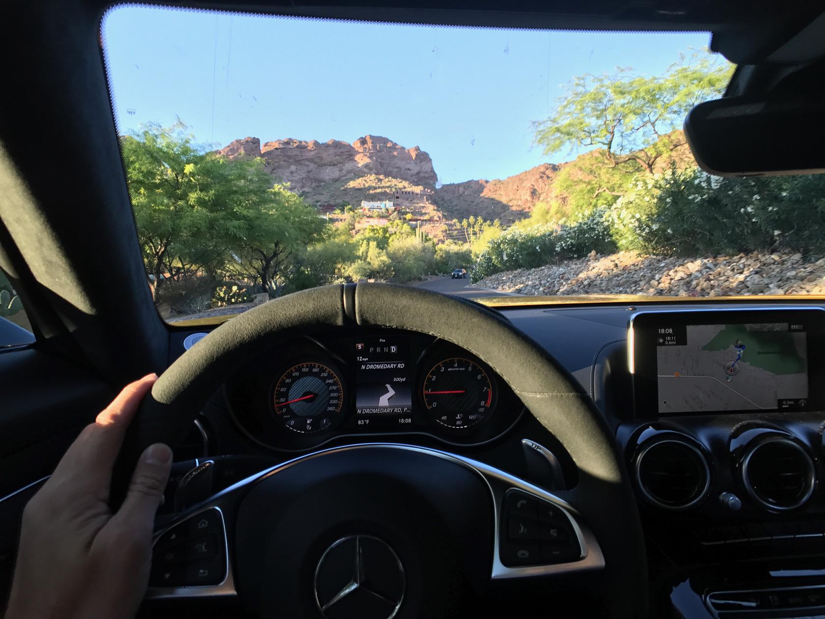 Luckily, my fun in the sun with Mercedes-AMG's new GT C Roadster in Arizona didn't come to a premature end when my driving partner got a speeding ticket. The topless Solarbeam Yellow GT cruiser shot out as though the canyon had just given birth to it... and that happened to be the exact spot where we drove past the state trooper. I sat quietly in the passenger seat as he explained to the officer, "it's this stupid car, it feels like it's going 60..." only to have the officer reply "you're really flying, I clocked you at 90 mph."