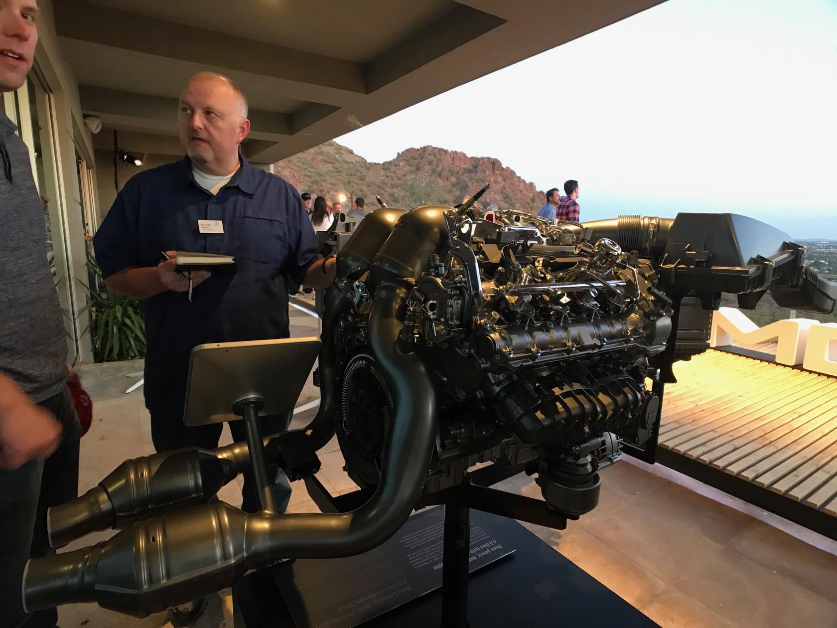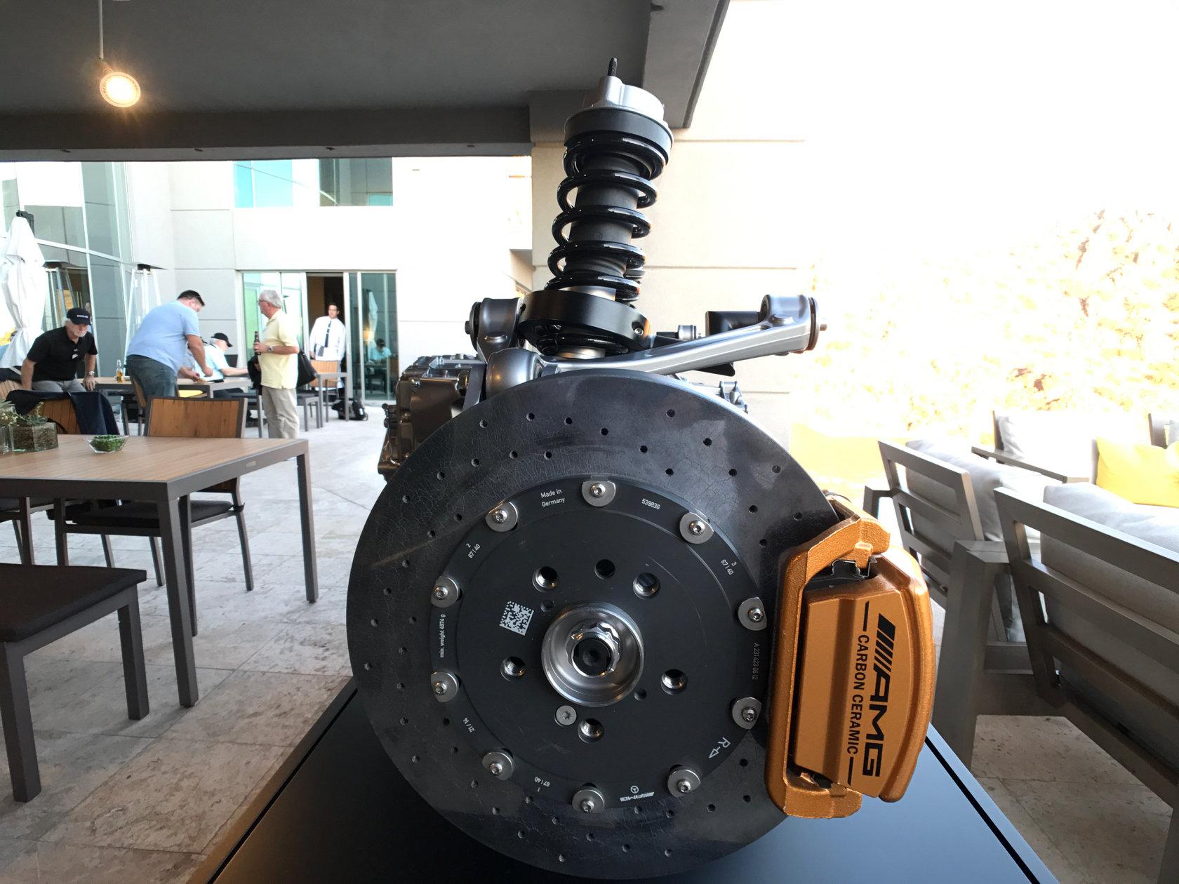 Speaking to Jorg Letzel, Product Management at Mercedes-AMG, he confirmed that the GT C Roadster and GT R in fact share the same transmission. "There's a longer first gear for better acceleration," he explained, "with a shorter 7th gear in order to reach high speed even further, with the same high speed shifting time." Letzel also elaborated on the changes that take place when switching drive modes from Sport+ to Race: "the sound of the exhaust system, shorter shifting time, [and] throttle response time is more sensitive and the steering stiffens up." Depending on the driving mode, "starting from drive mode Comfort to Sport+, the spoiler pops up at 120+ km/h and under 80, it goes down. In race mode, the spoiler pops up at 70 km/h and down below 30 km/hr."