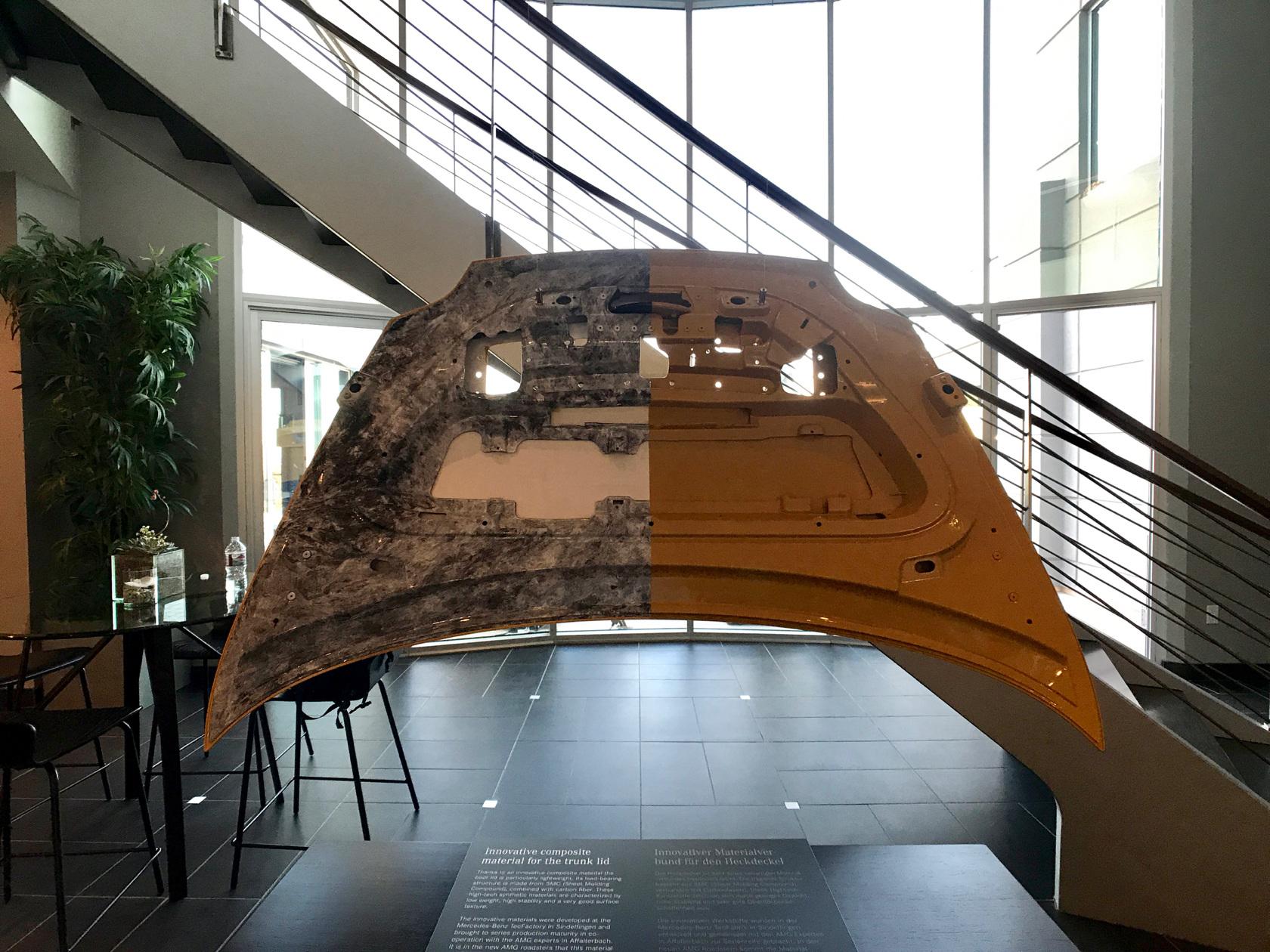 Unlike some droptop rivals, there's no hydraulically sprung roll bar that thrusts out in the event of a rollover. Instead, AMG uses a static roll cage which is lighter. If I had a complaint, it's that the thick A-pillar intrudes on your forward view at times, particularly when you're hunting for the apex during a hairpin turn. With two bodies inside there's not much room in the cabin for much else, so expect to pack light for a weekend getaway. There's enough space to fit a couple of duffle bags, though for golfers, the designers and engineers came up with a trunk where, with the quick removal of a cap, you can fit longer-than-average clubs.