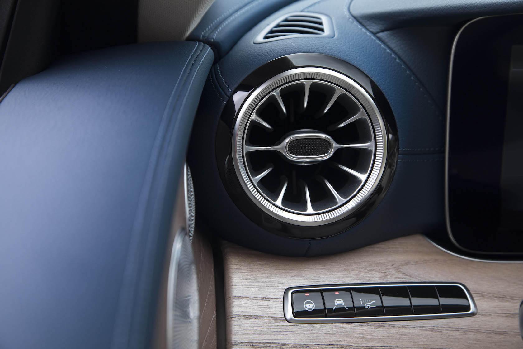 It's an imposing car, but it wears that growth well. "The time of the creases is over," head designer Gorden Wagener says of Mercedes' new "sensual purity" style language, doing away with the sometimes awkward sharp lines of previous models in favor of sleek haunches and fluid power-domes on the hood. AMG-borrowed detailing gives it some sporting edge, while the whole thing is lowered, visually and literally, from the sedan by the horizontal lines spanning the diamond-studded grills and the deeper position of the license plate.