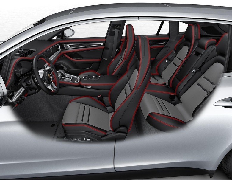 Forward of the B-pillar, the Panamera Sport Turismo is identical to the four door variant. Moving rearward, there's an adaptive, three-position active roof spoiler. Sure, it's not as eye-catching as the Transformer-like rear spoiler on the Panamera 4S Turbo, but it's still pretty damn cool. Although it may look like a single piece, there's actually a spoiler integrated into the fixed spoiler. The second automatically flares up to performance mode at above 106 mph, though since that means on US roads you'd never see it (well, not if you want to keep your license) it can be manually triggered for more downforce, up to 110 pounds.