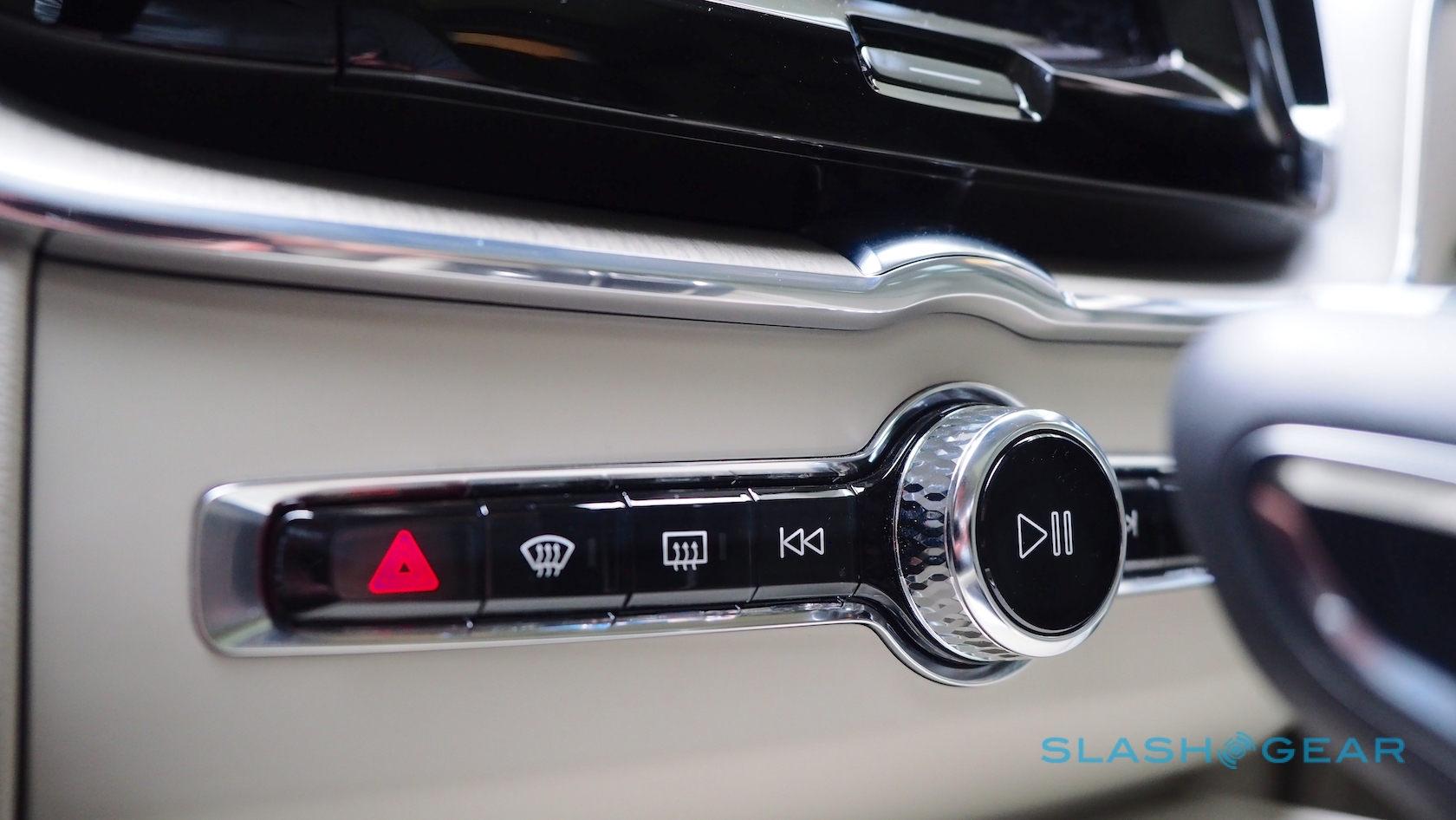 Again, the interior borrows heavily from that of the XC90, a strategy which I can't complain about. The center console is dominated by the 9-inch Sensus touchscreen, a portrait-orientation panel from which multimedia, navigation, car settings, and the standard-fit Apple CarPlay and Android Auto are controlled; for the 2018 model year, Volvo has redesigned the UI to avoid digging through menus and make features more immediately available. It's bracketed by a ribbon of metal that spans the width of the cabin and, in Inscription trim, a single, sinuous wave of "Linear Lime" wood.