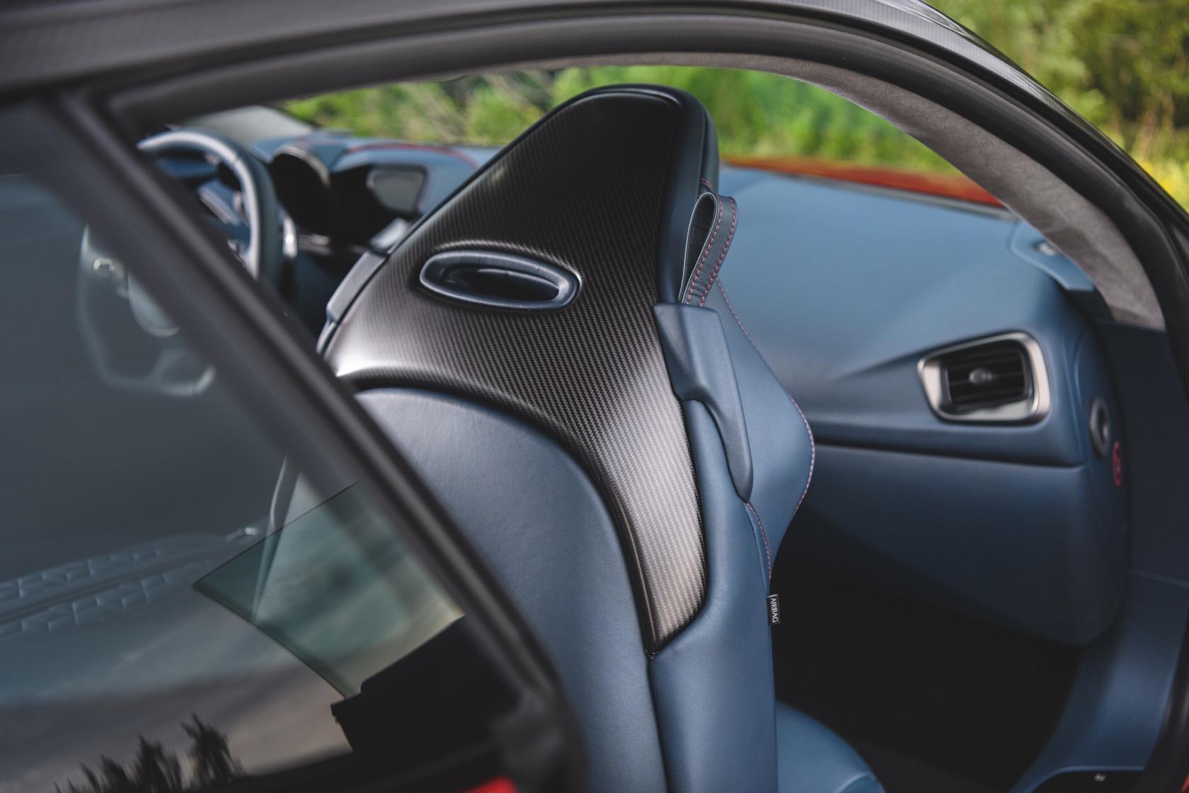 More important, it's all damn comfortable. There's copious space on the broad center console to rest your elbow, or even your entire arm, whether you're driving or playing passenger. You sit low, cocooned, your body another component that's plugged into the chassis. You can feel everything the rear end is doing in a way that few other RWD cars manage, that "centered" sensation from the Vantage only more refined and polished.