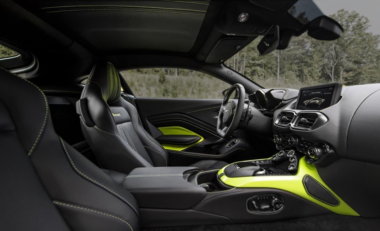 Sport and Sport Plus seats are being offered, each 10mm lower than usual, though the Vantage isn't necessarily impractical. There's a 350 liter trunk, along with a surprising number of stowage places and cubbies in the cabin itself. Carbon fiber interior trim is optional.